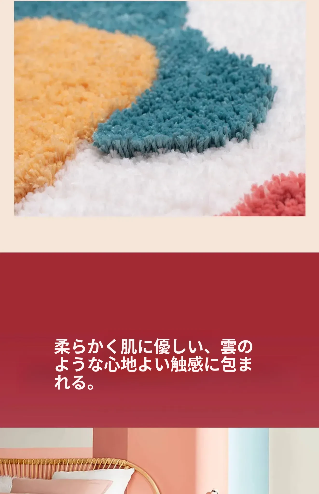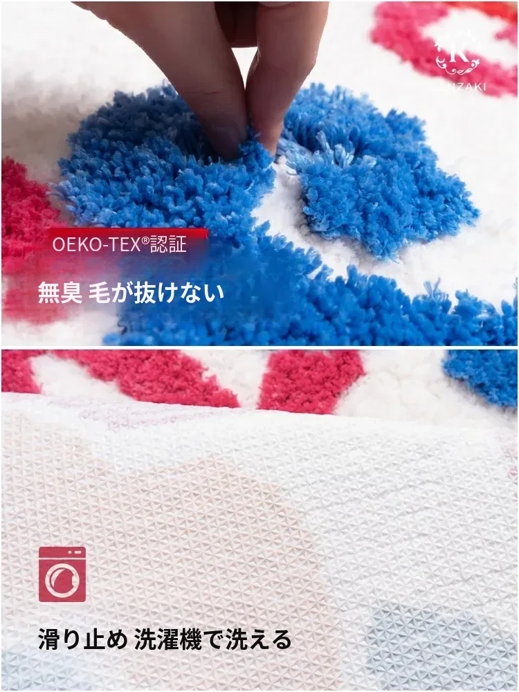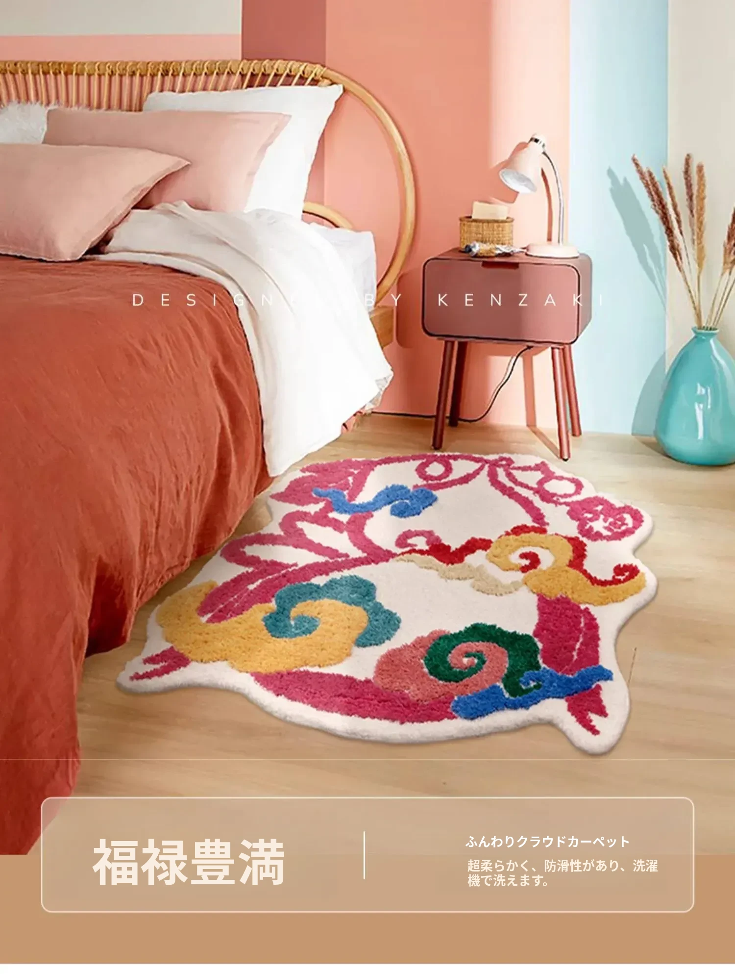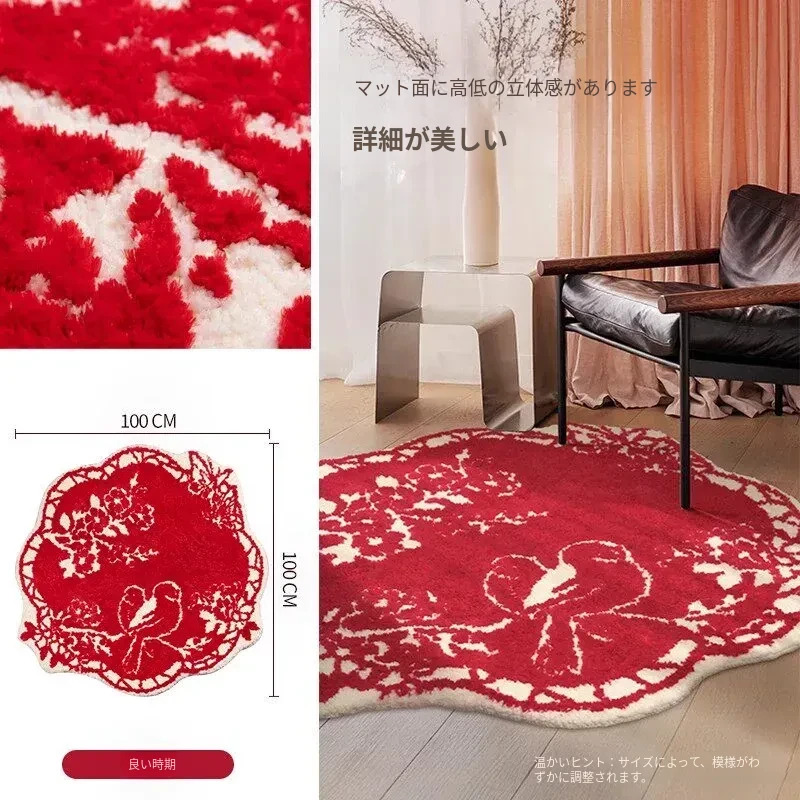 新婚のお部屋にぴったり!赤色のベッドサイドカーペット - 子供部屋にも最適な滑り止め機能付き、洗濯機で洗える異形デザイン。新生活を彩るアイテム!