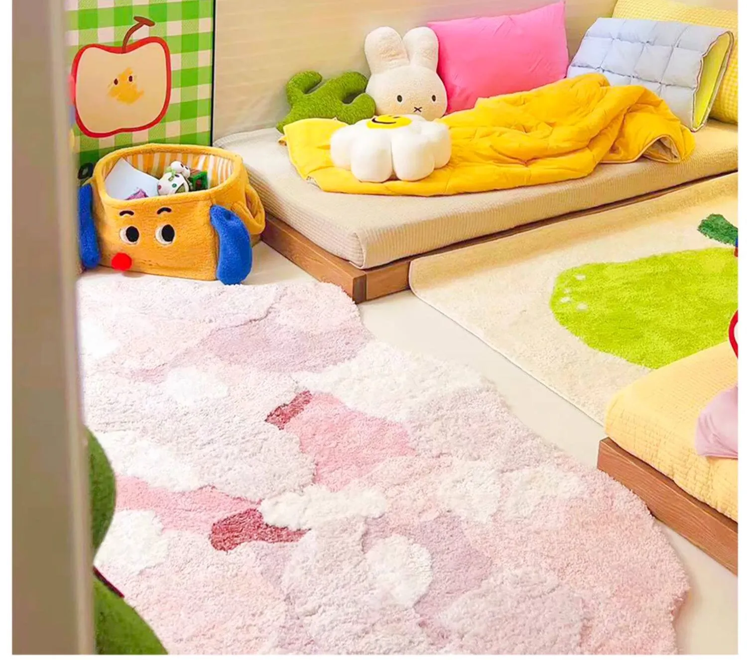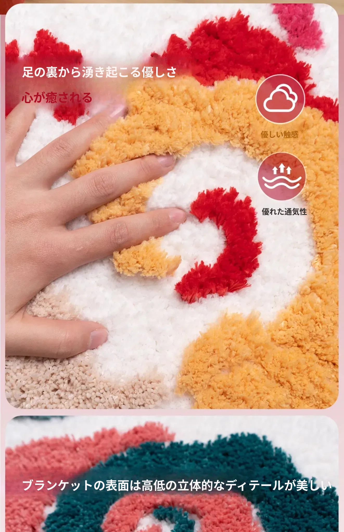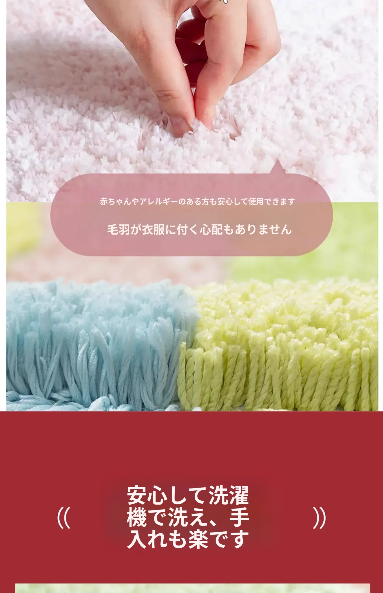 新婚のお部屋にぴったり!赤色のベッドサイドカーペット - 子供部屋にも最適な滑り止め機能付き、洗濯機で洗える異形デザイン。新生活を彩るアイテム!