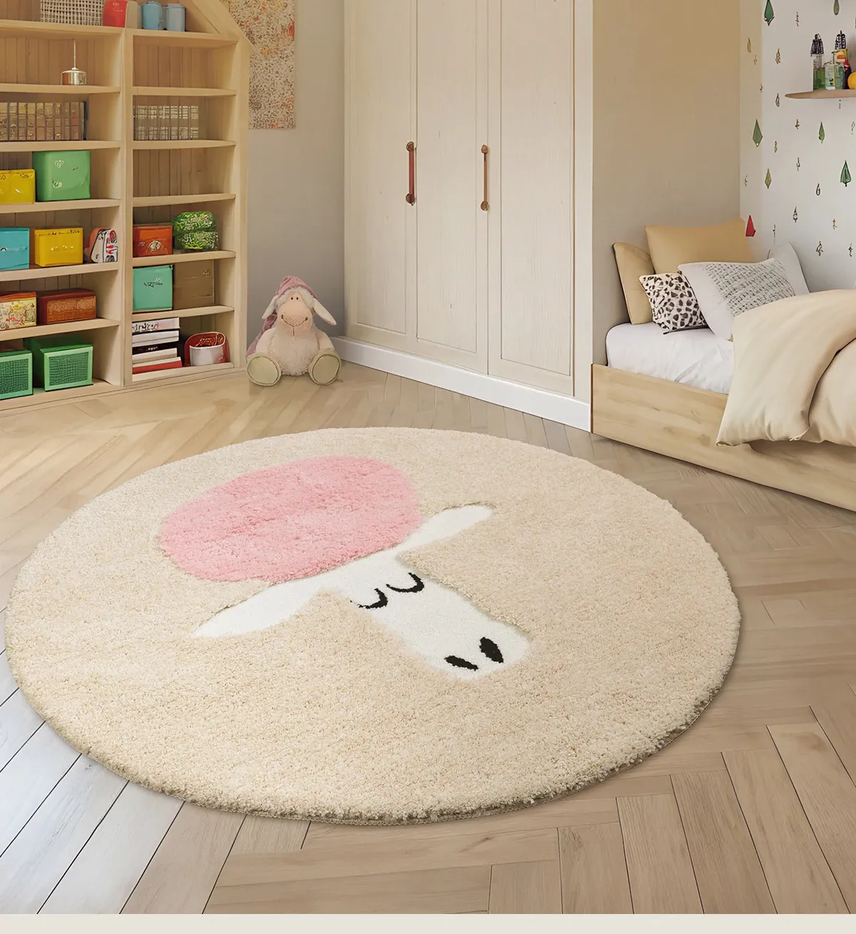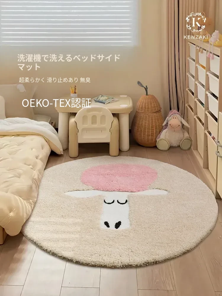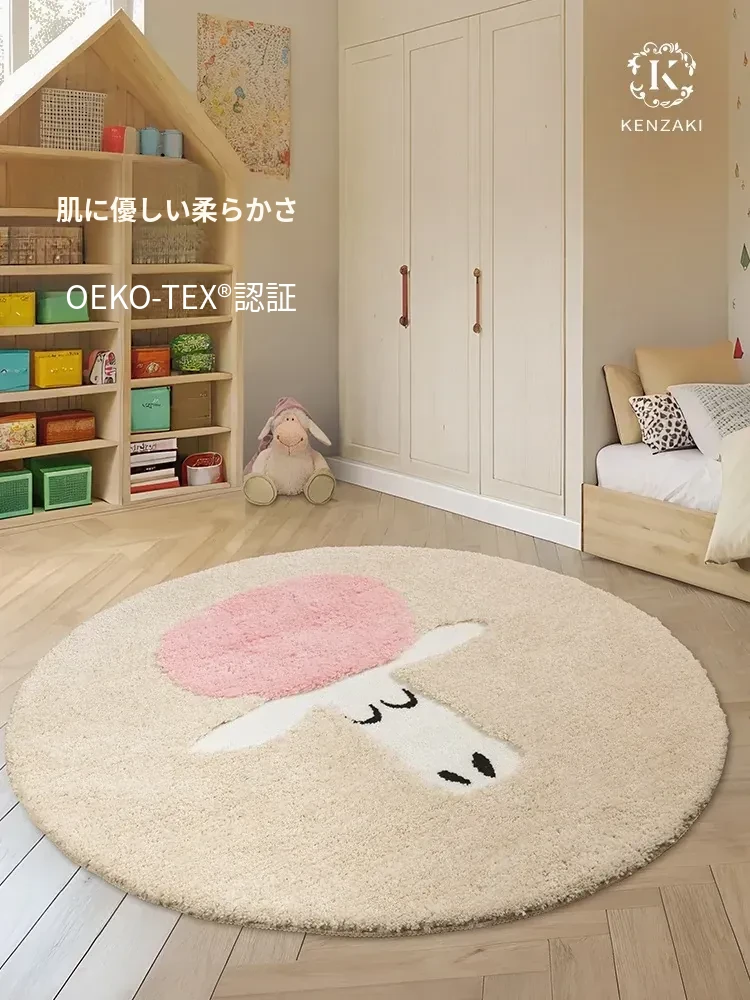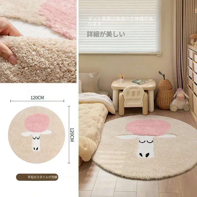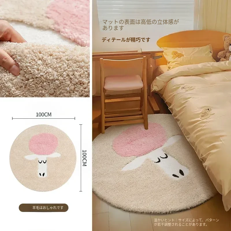 可愛らしい小羊デザインの円形ラグ - 女の子の寝室や子供部屋に最適!コンピューターチェアの下やリビングルームのアクセントにぴったりな高級感あふれる軽やかなマット。おしゃれで心地よい空間を演出します!