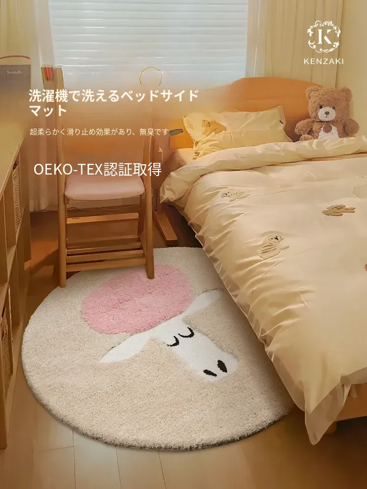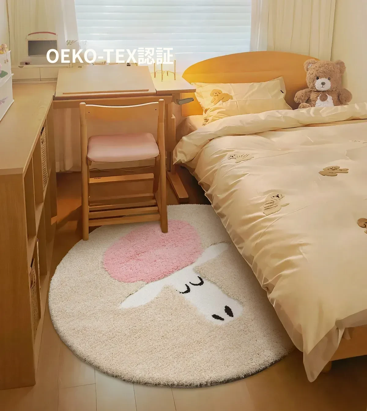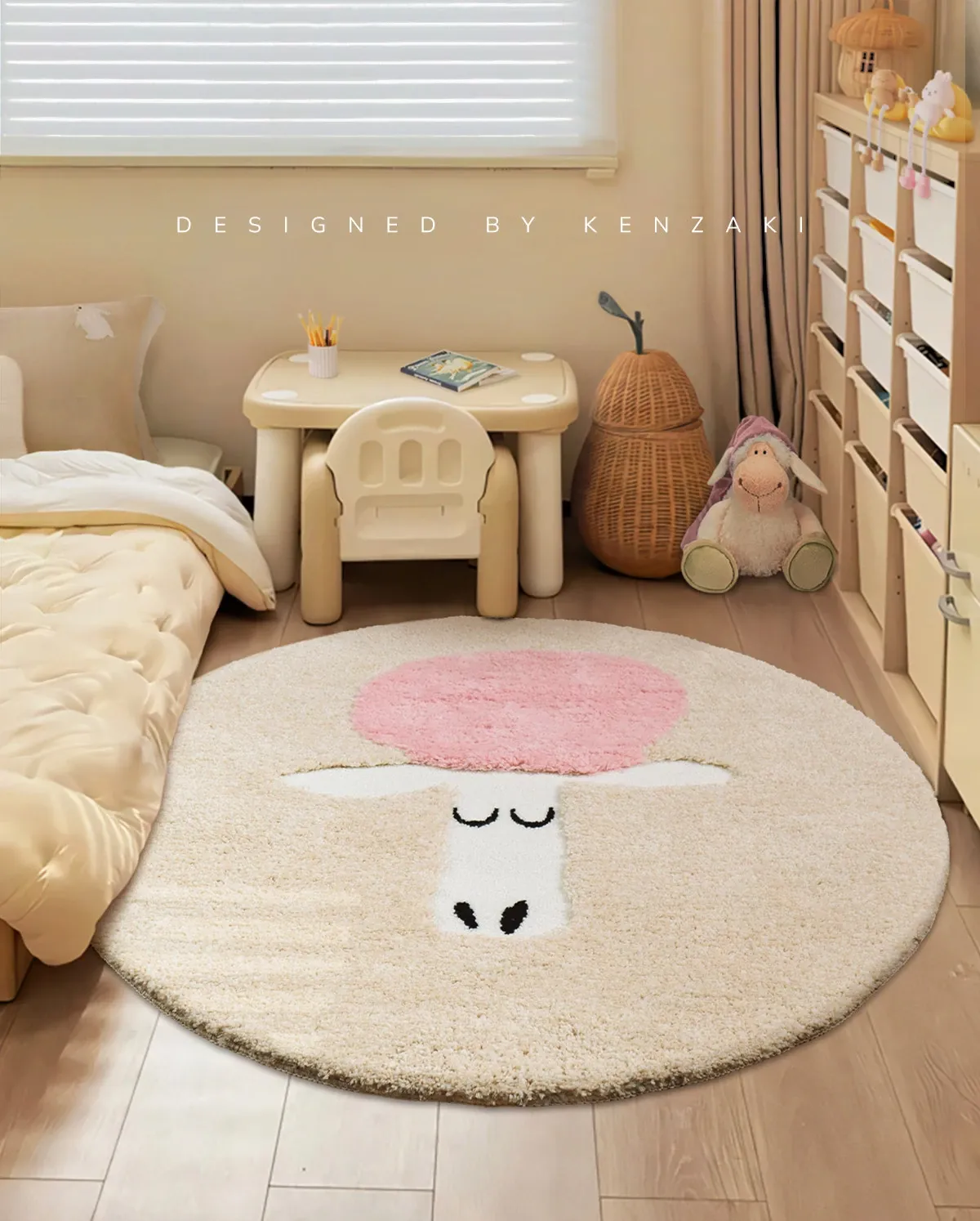 可愛らしい小羊デザインの円形ラグ - 女の子の寝室や子供部屋に最適!コンピューターチェアの下やリビングルームのアクセントにぴったりな高級感あふれる軽やかなマット。おしゃれで心地よい空間を演出します!