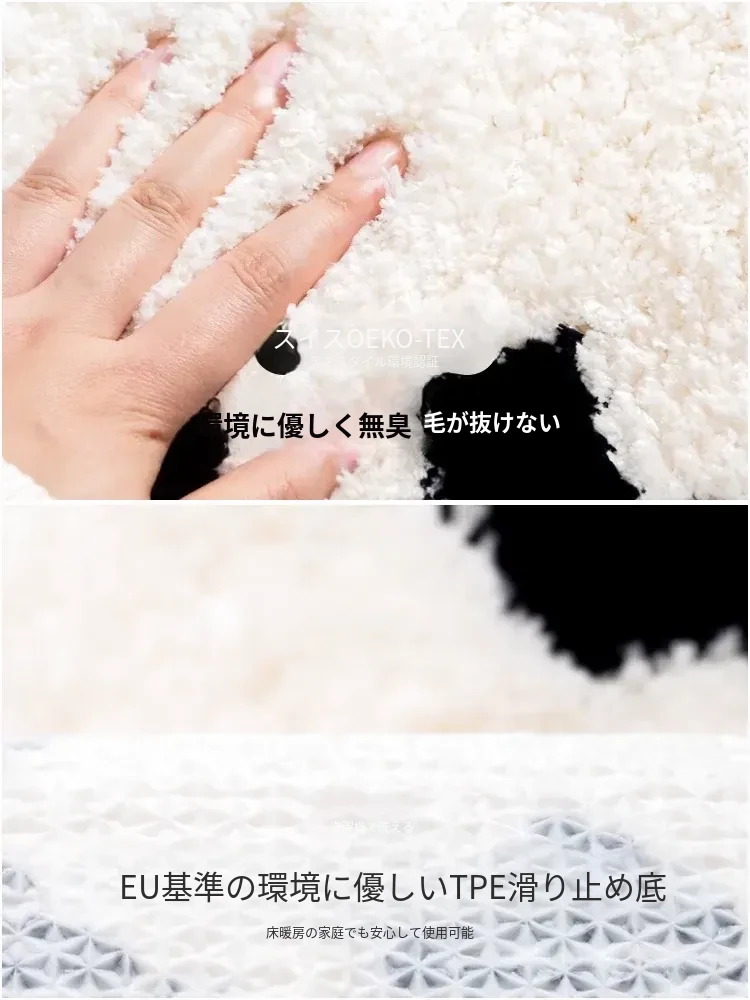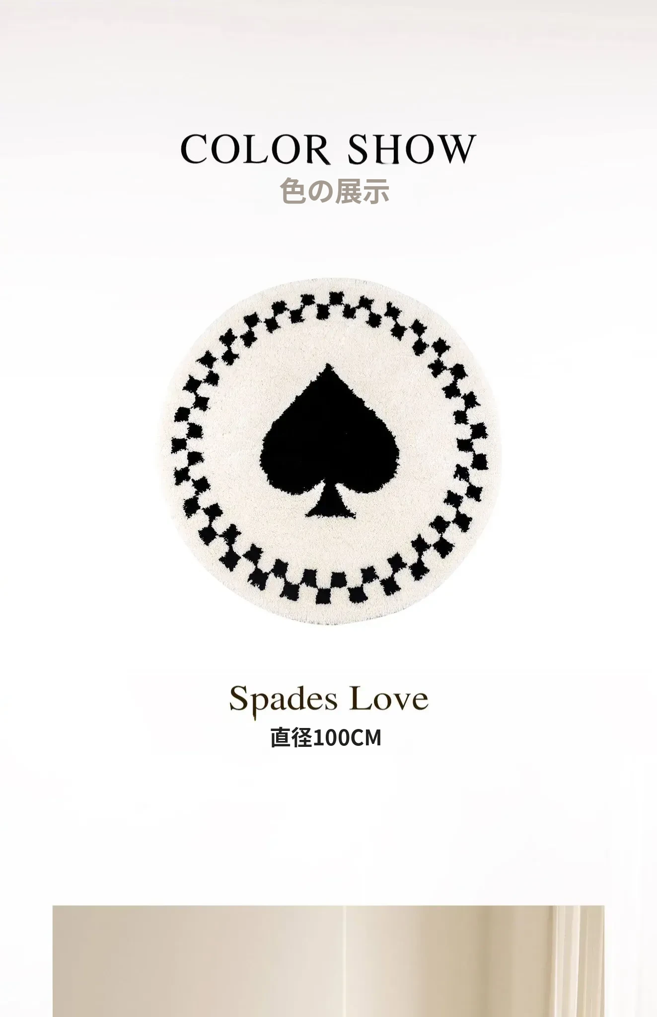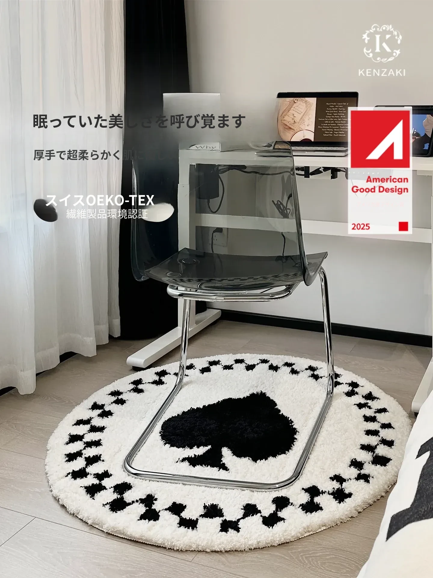 ラウンドカーペット リビング・ベッドルーム・ベッドサイド・チェア用マット 子供部屋に最適!超柔らかく洗濯機で洗える ブラック・ハートデザインでおしゃれなインテリアを演出!