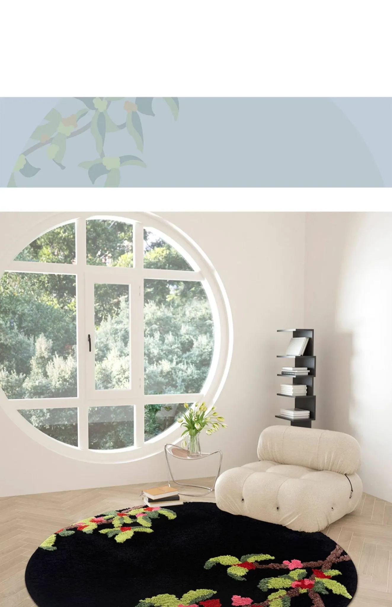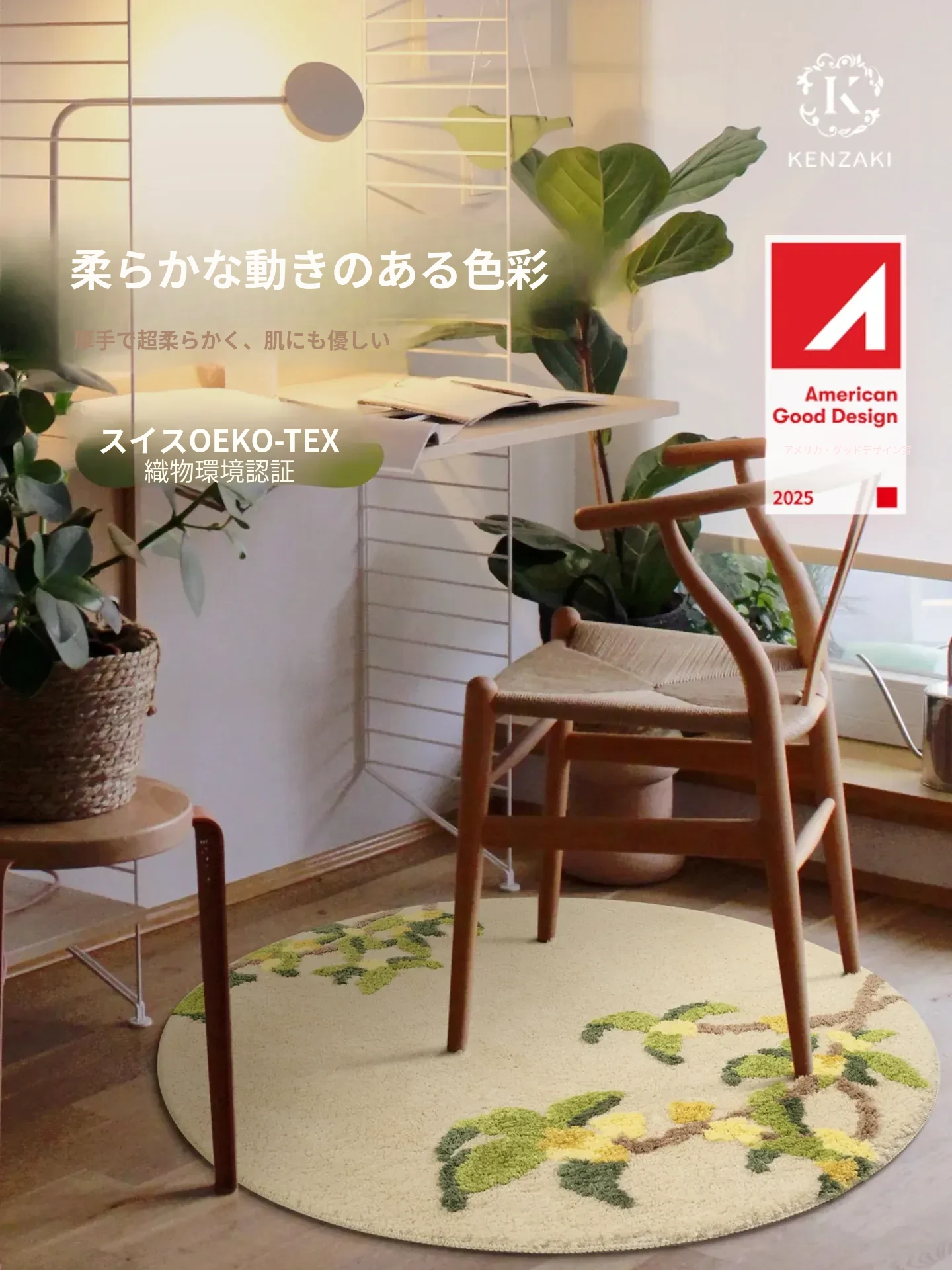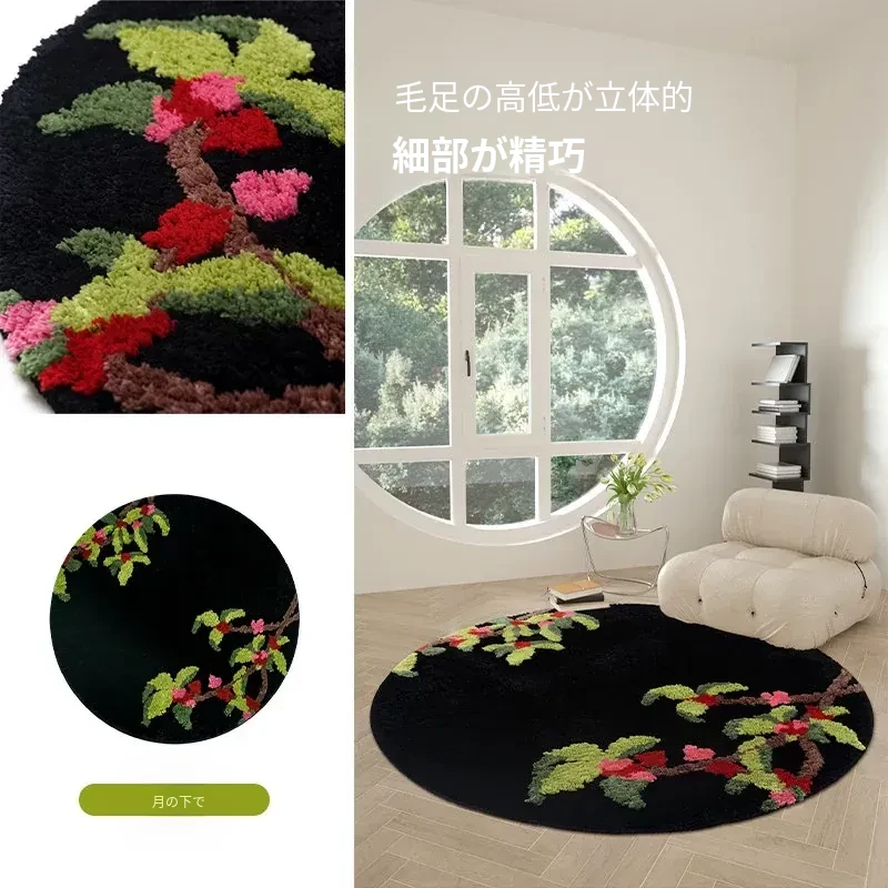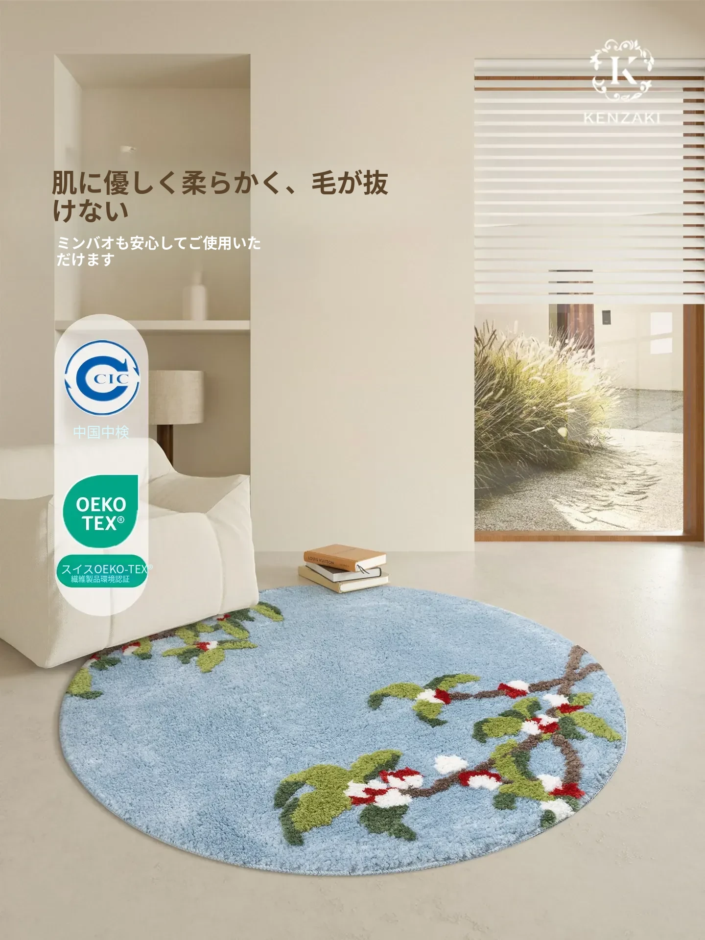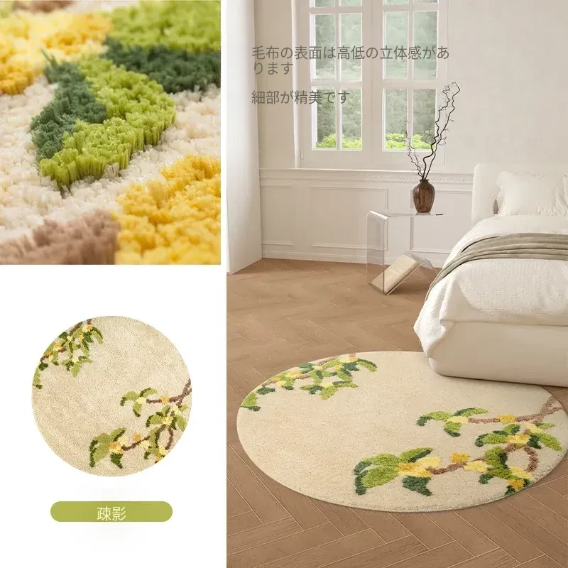 洗える円形ラグマット|新中式デザインの化粧椅子・デスクチェア用マット|リビング・寝室・ベッドサイドに最適|滑り止め付きで安心!
