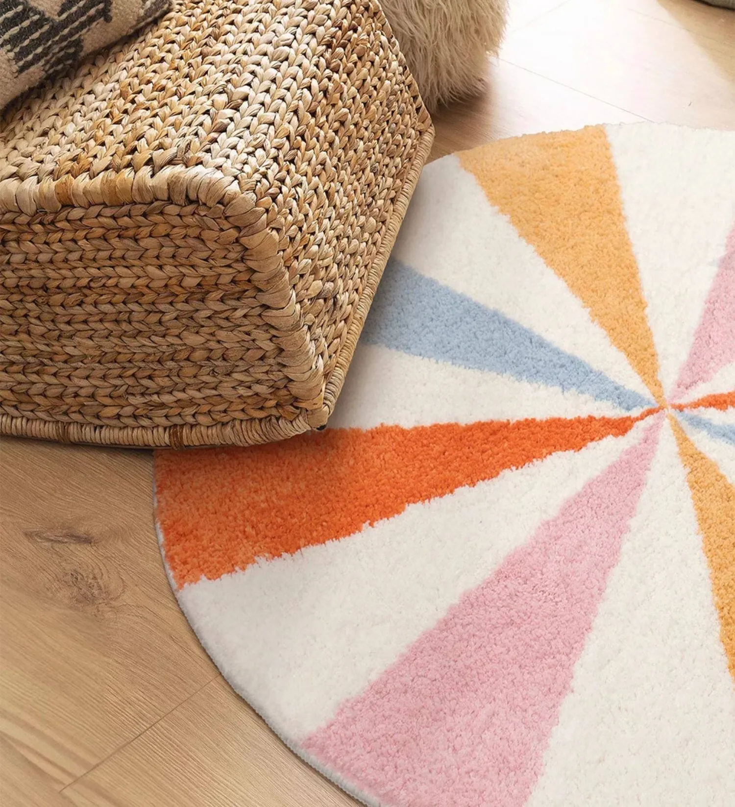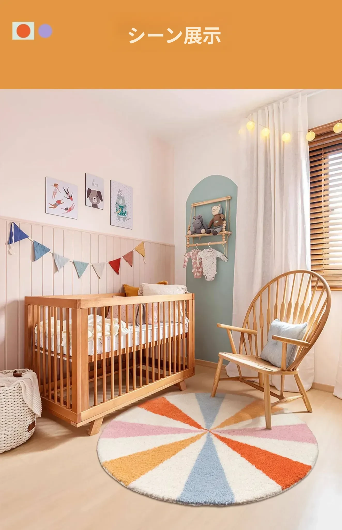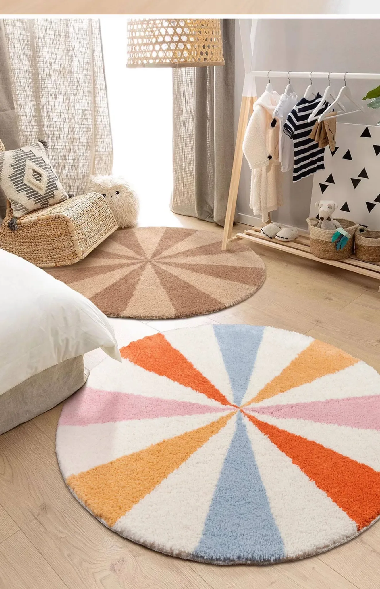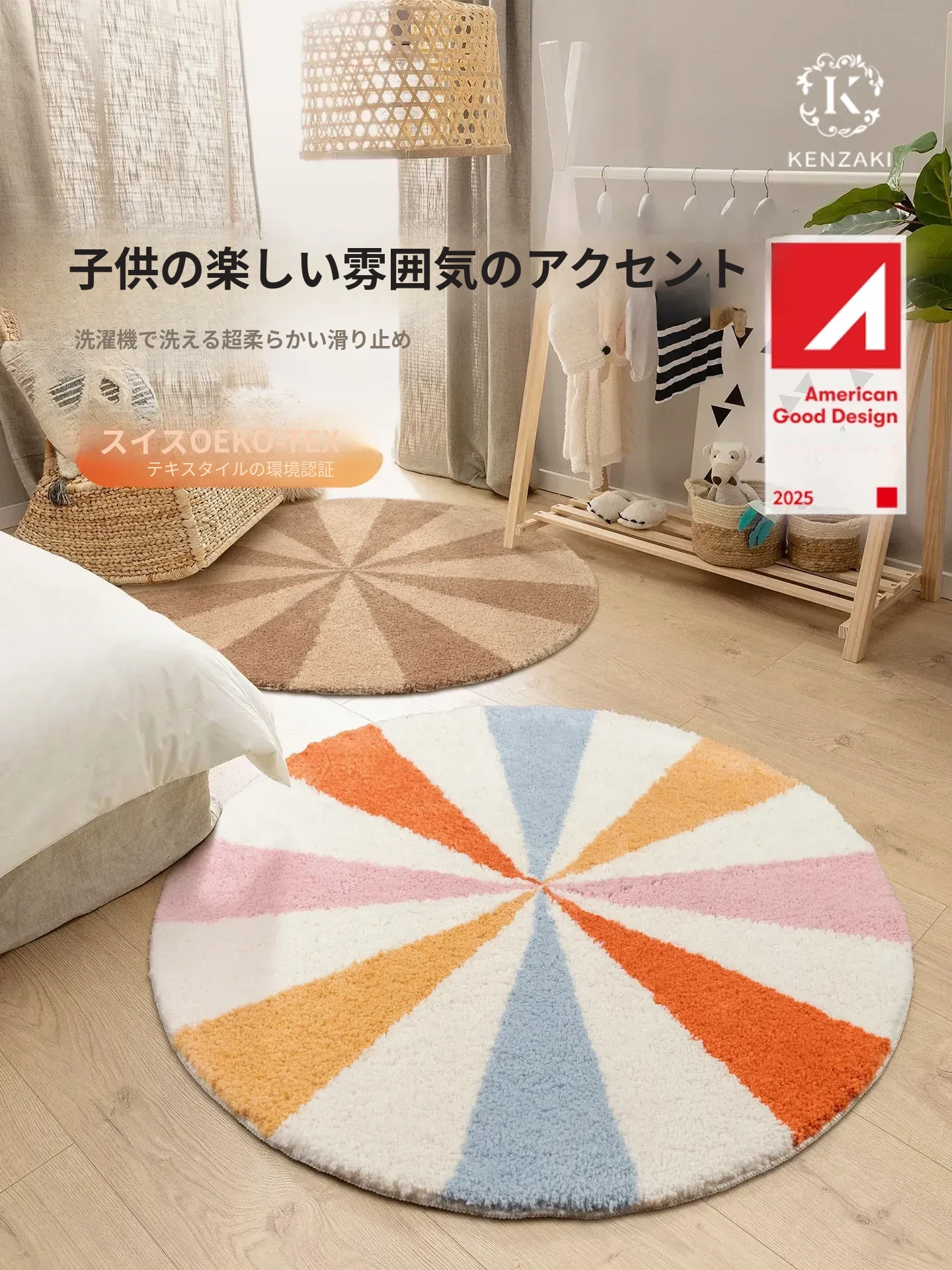女の子の部屋にぴったり!韓国風カラフルなドパミン虹形ラグ - 柔らかく、洗濯機で洗えるおしゃれなカーペット。子供部屋やリビングに彩りを添えて、心地よい空間を演出します!