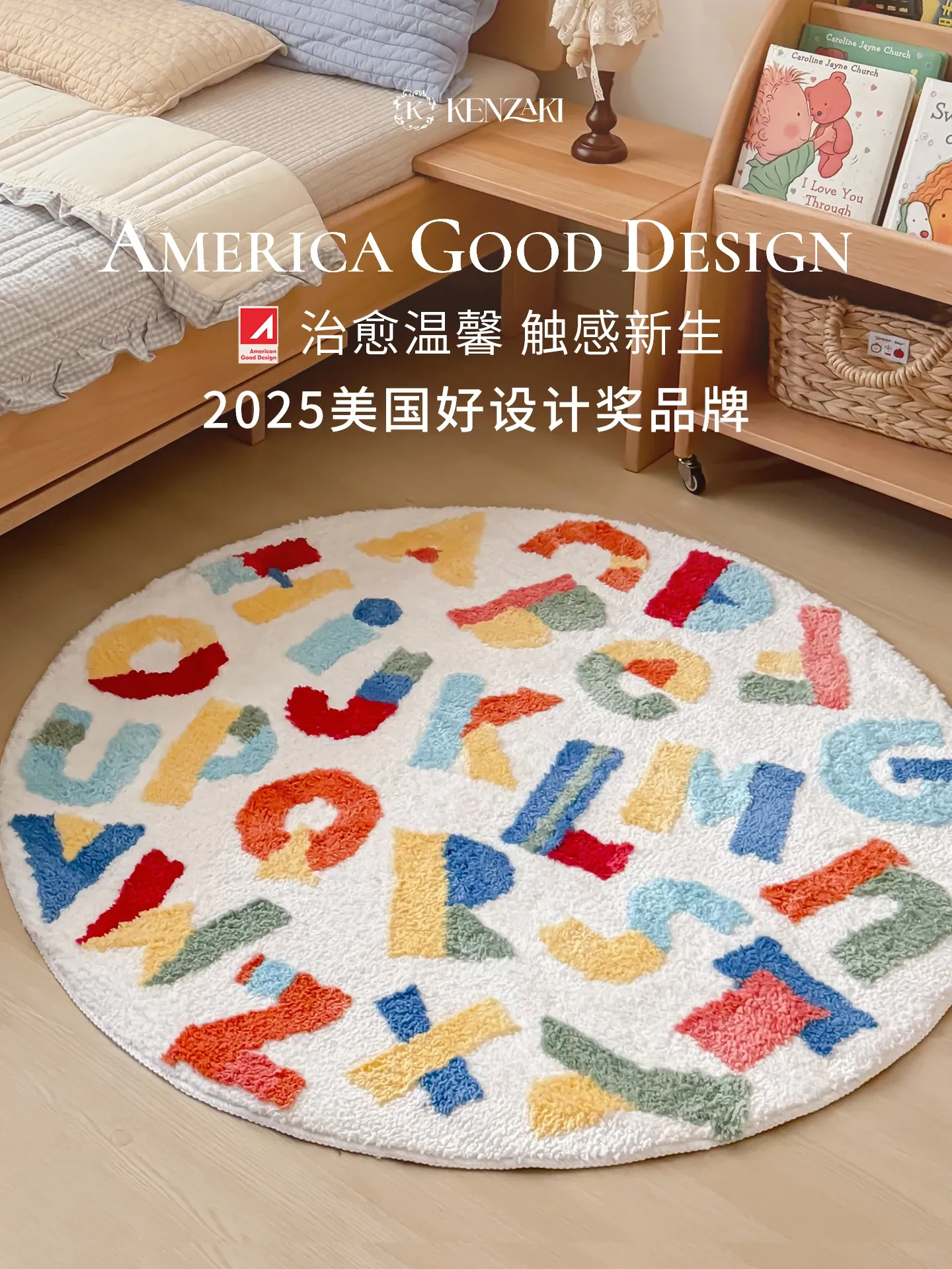 子供用丸型カーペット・リーディングエリアマット|男の子・女の子向け|ベッドサイドマット|カラフルなドーパミンアルファベット|洗濯機で洗える!楽しい時間を演出する、快適なスペースをお届けします。