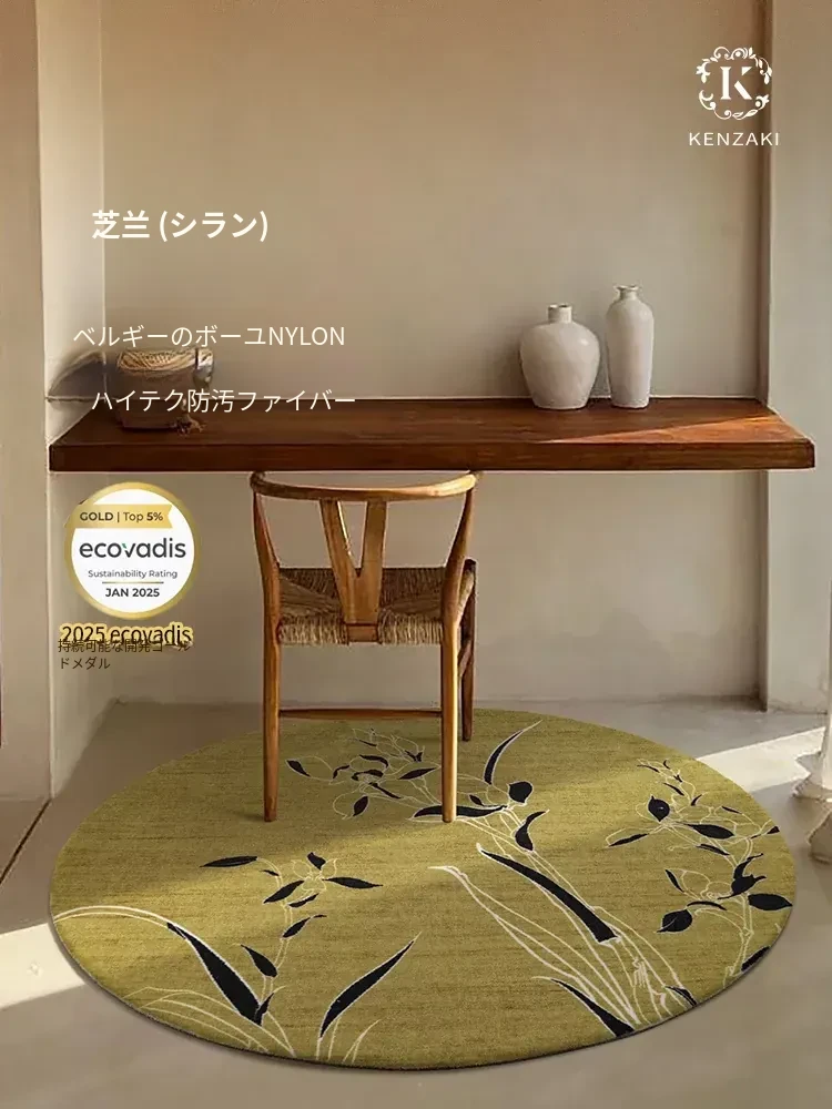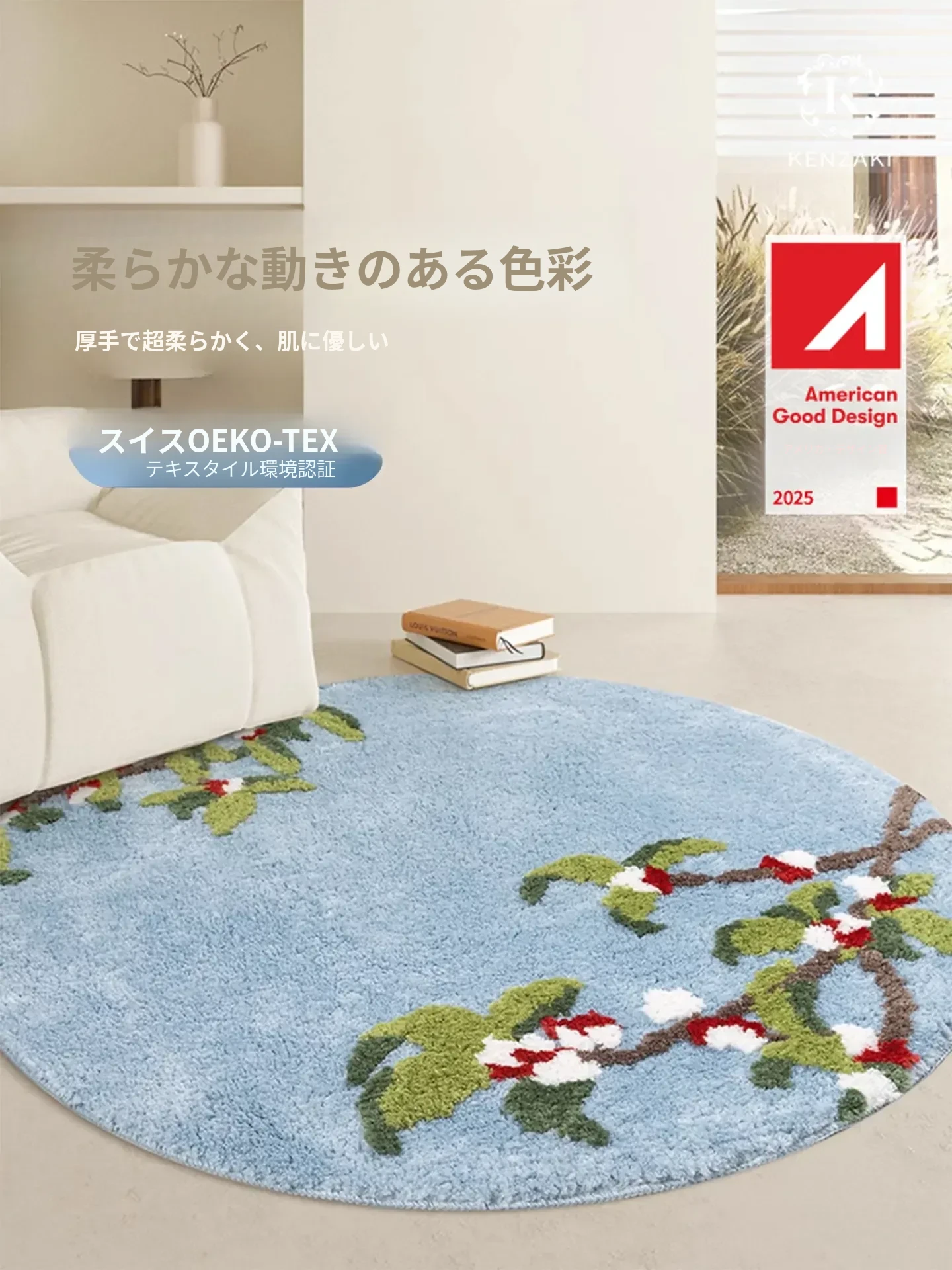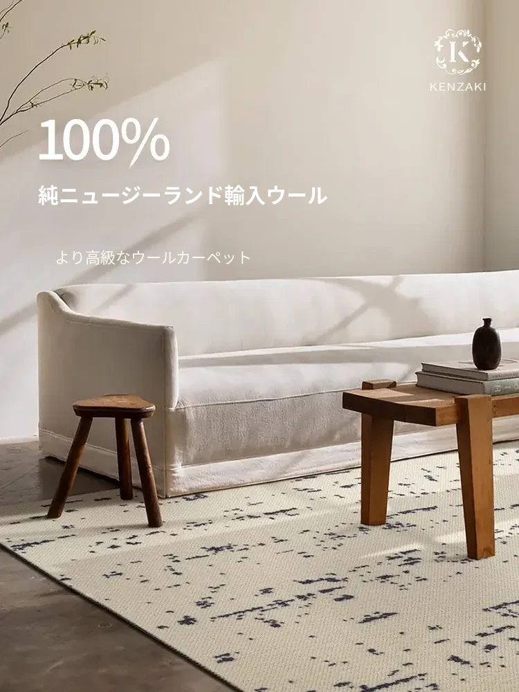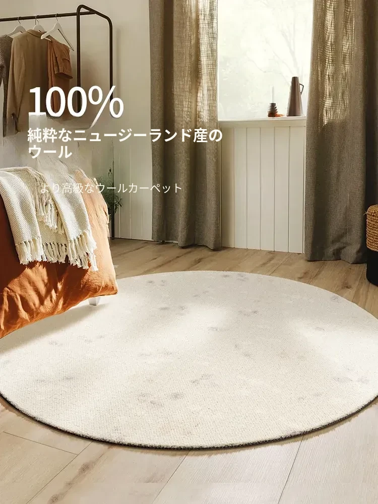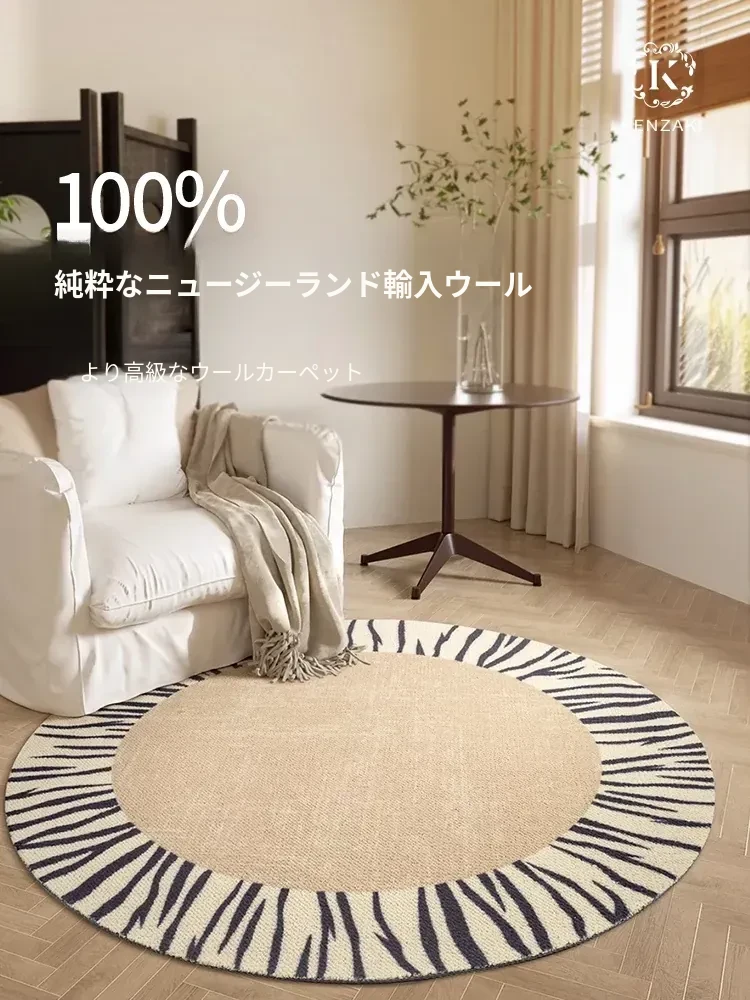 KENZAKI健崎 100%純正ニュージーランドウールラグ|リビング・寝室に最適な高級感あふれる円形カーペットで、心地よい温もりをお届けします!