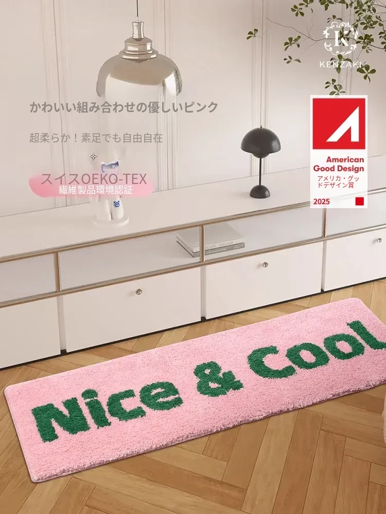 可愛くてクールなピンクの長方形ラグ!お子様の部屋やベッドサイドにぴったり。ダイパークマットとしても大活躍!機械洗い可能で、お手入れも簡単。おしゃれなインテリアを演出します!