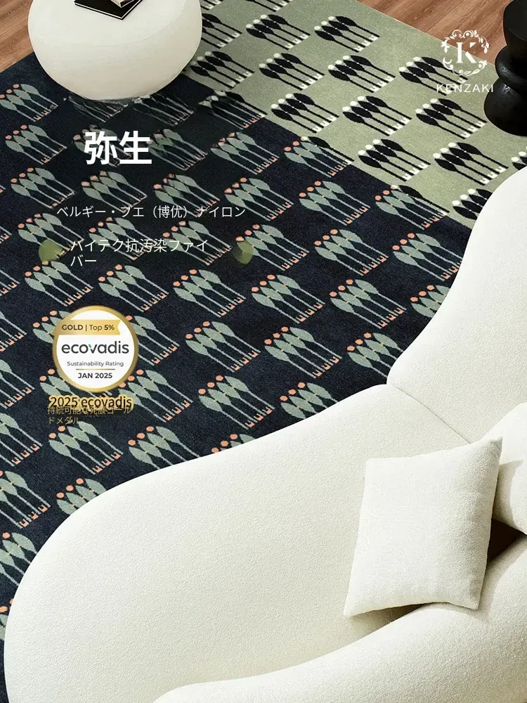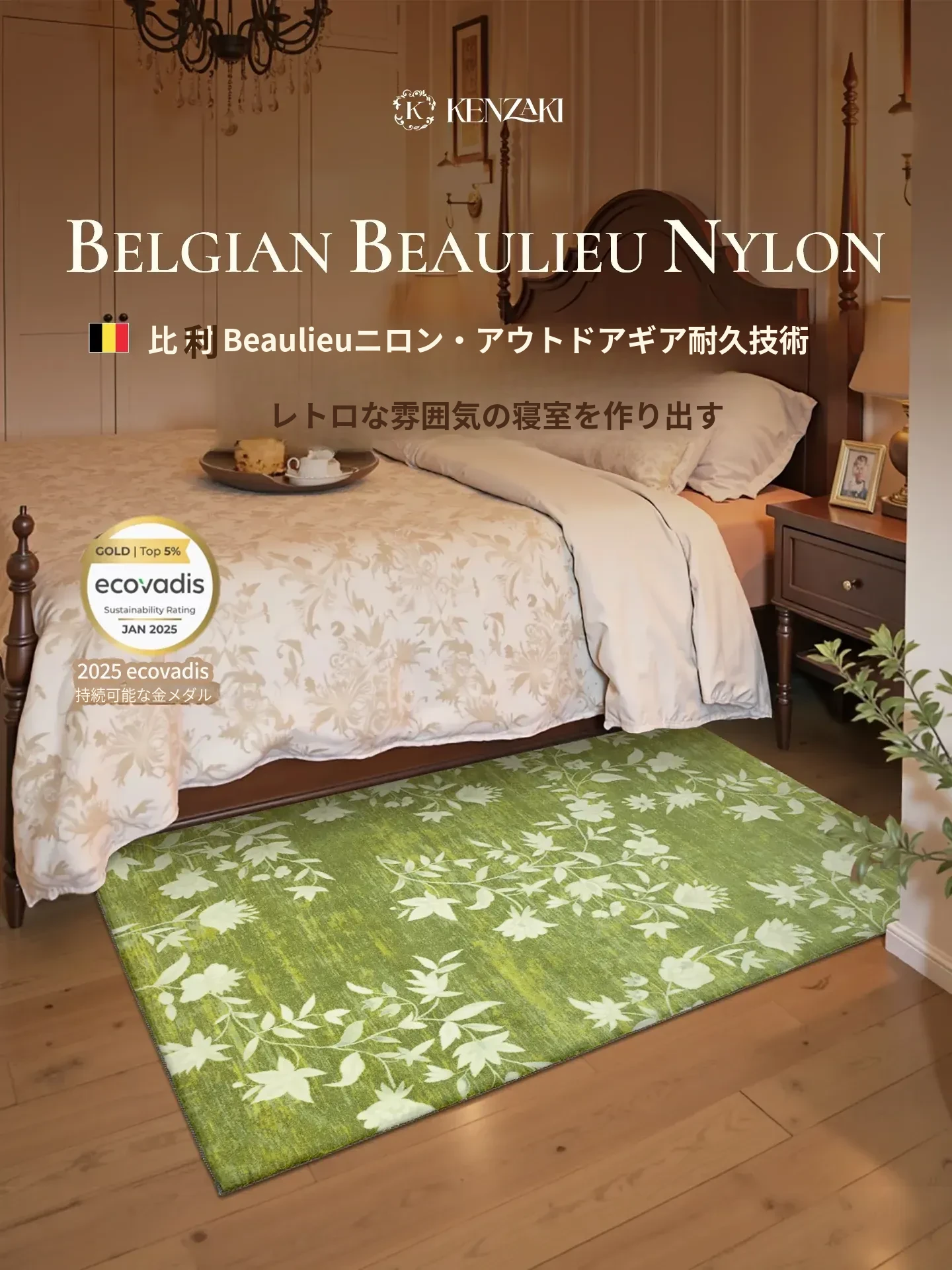 KENZAKI健崎 高級感あふれるレトロフレンチスタイルのグリーンカーペット - リビングや寝室に最適、ソファの横にぴったりな音を吸収するデザイン。あなたの空間を一層引き立てるアイテムです!