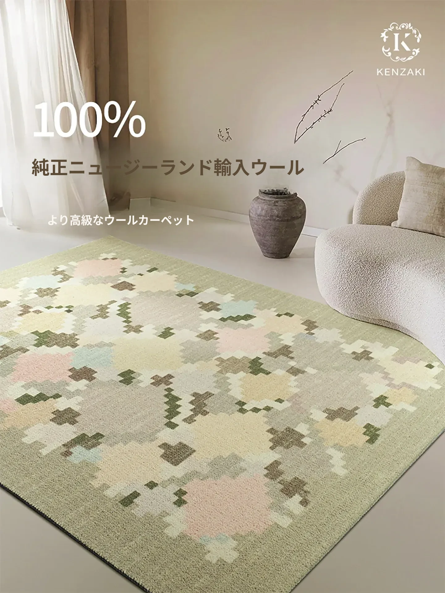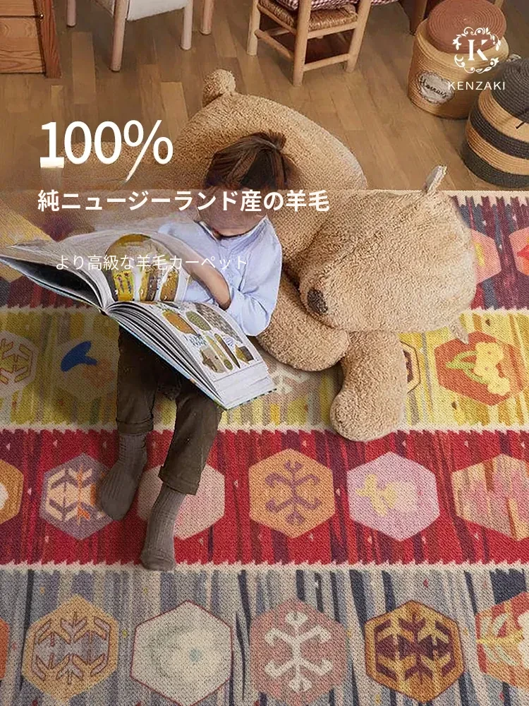 100%ニュージーランド産ウールラグ|子供用マット・リビング・フレンチスタイルの寝室にもぴったり|高級感あふれるレトロなカラーデザインで、快適な空間を演出!