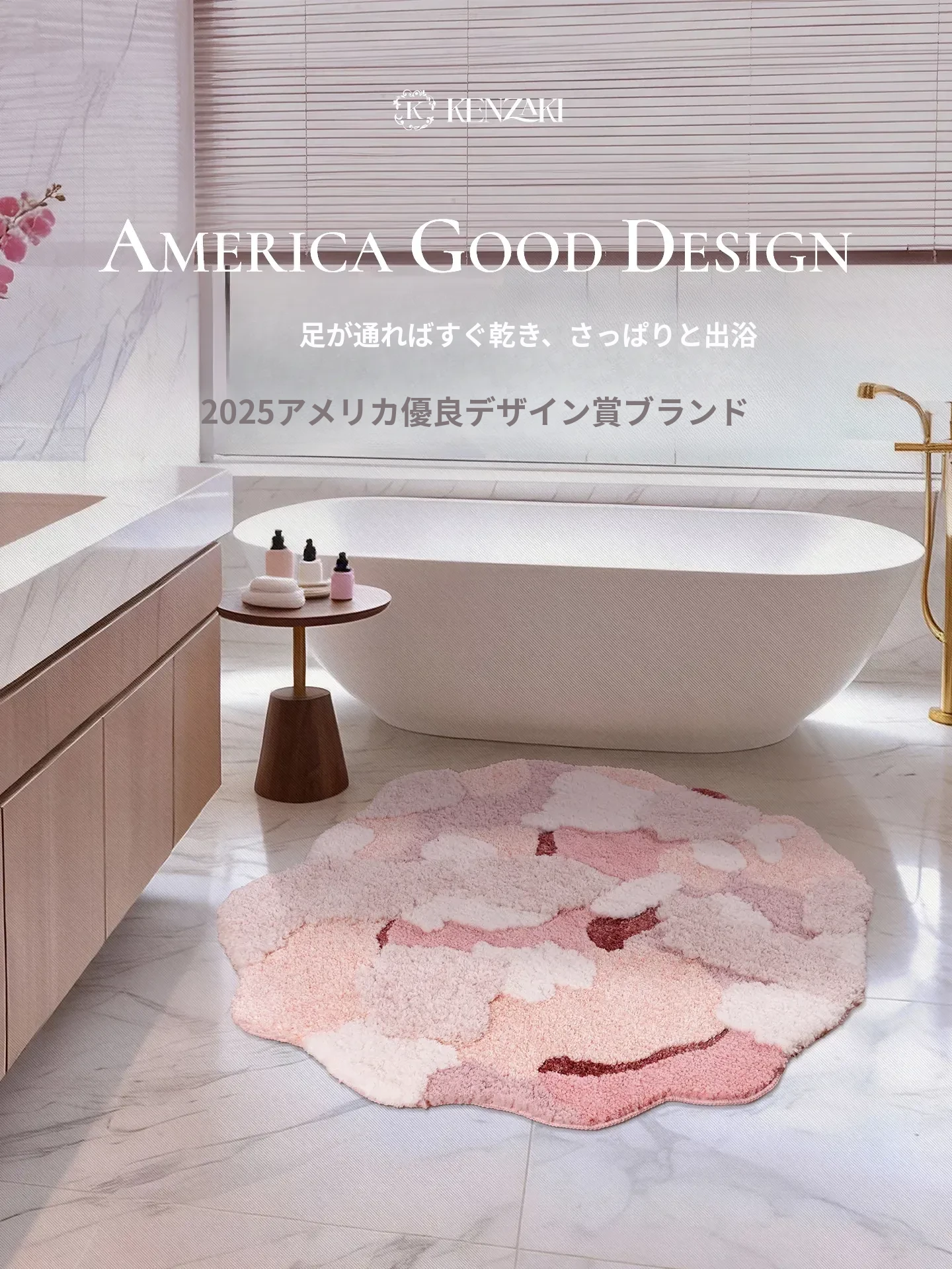 厚手触感のバスルームマット|吸水性抜群のピンクモスラウンドマット|滑り止め付きで安全|おしゃれで軽やかなバスルームに|洗濯機で簡単お手入れ可能!