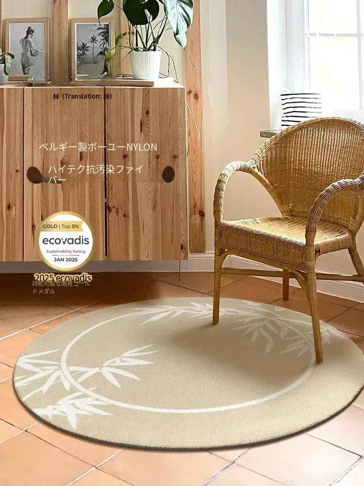 高級感溢れる円形ラグ - リビングや寝室にぴったり!子供のテーブルや椅子の下にも最適なヴィンテージブラウンの新中式竹デザイン。あなたの空間を華やかに演出します!