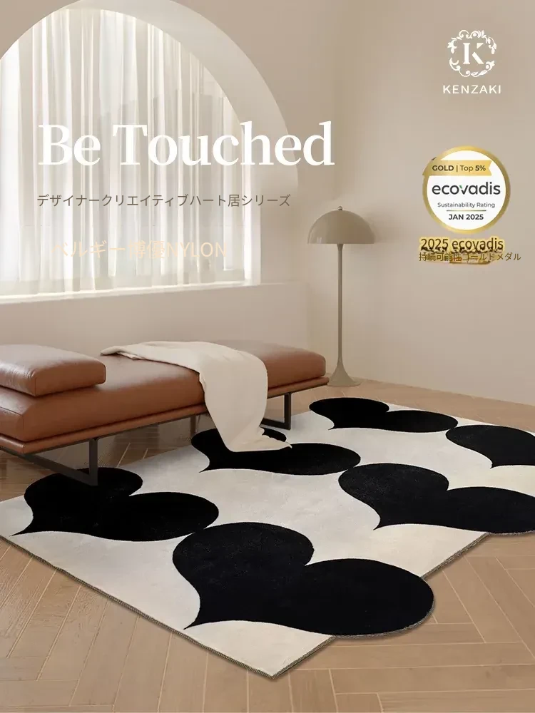 リビングルーム用ラグ 高級感漂うおしゃれなベッドサイドマット フレンチビンテージ & バウハウススタイル ブラックユニークシェイプ 子供部屋にもぴったり!