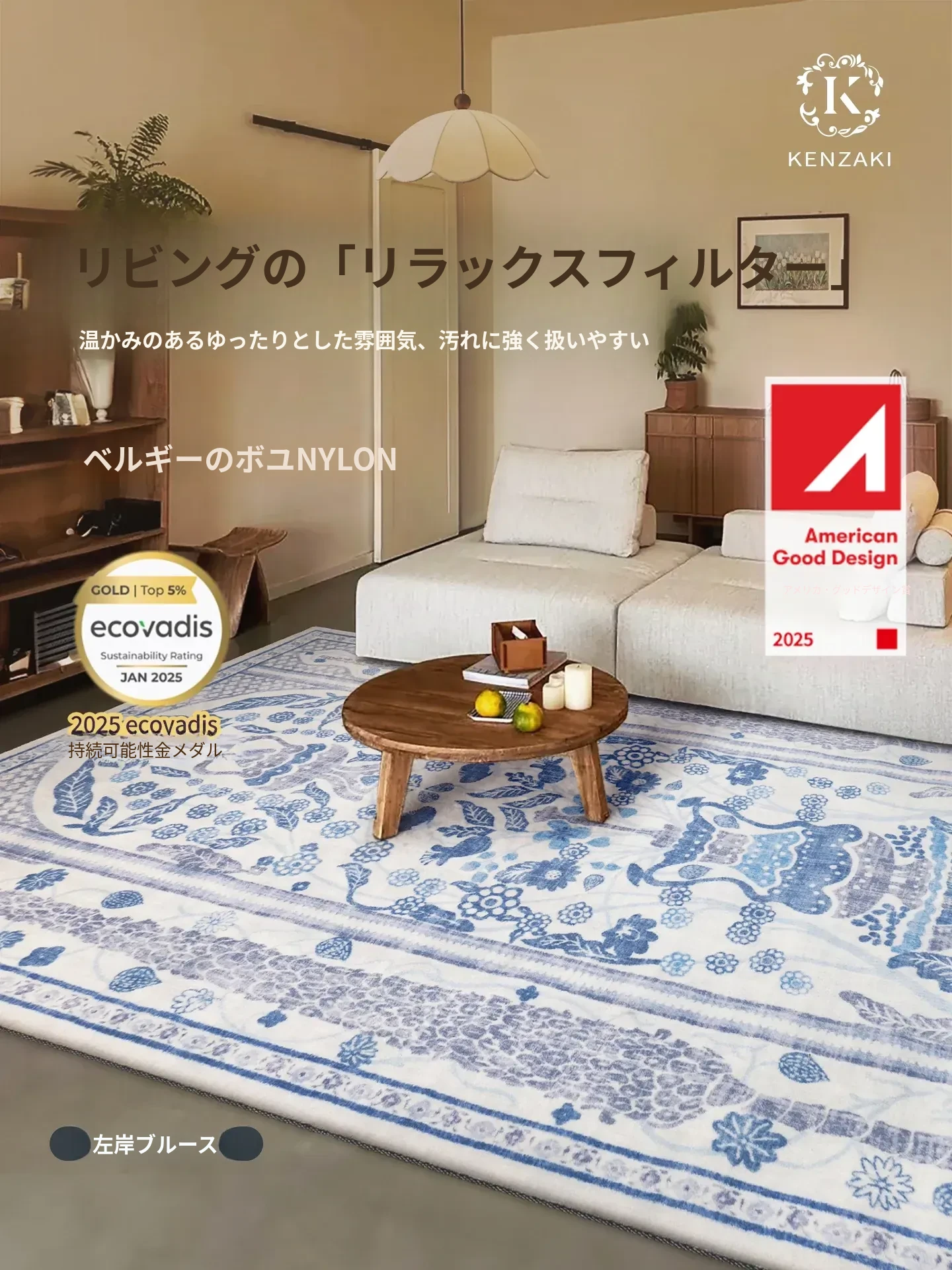KENZAKI健崎 ラグ マット リビングルーム 寝室 ベッドサイド 全面敷き フランス風 ラグジュアリー 高級ソファ テーブルにぴったり!快適さとスタイルを両立させた上質なインテリアをお楽しみください。