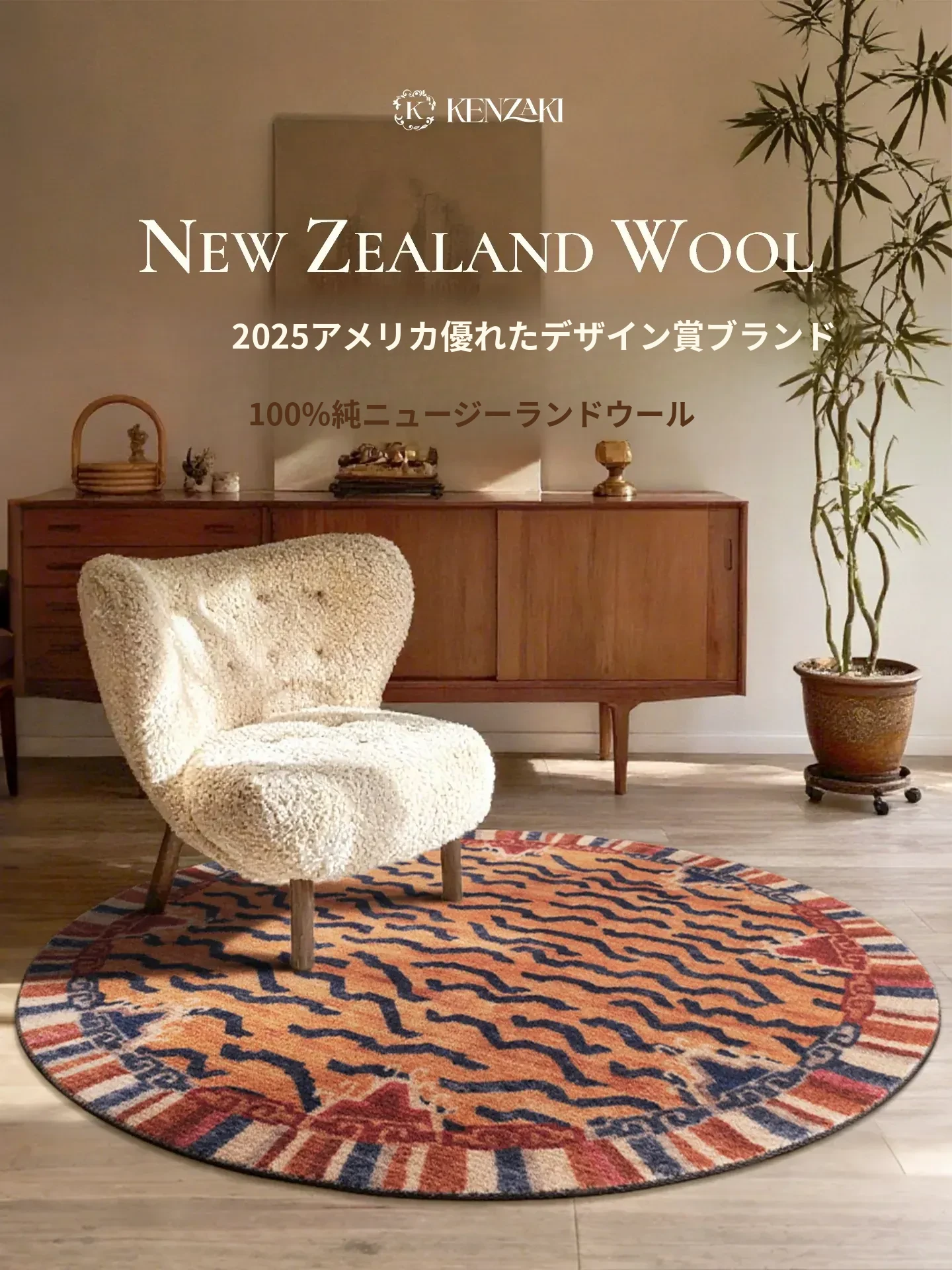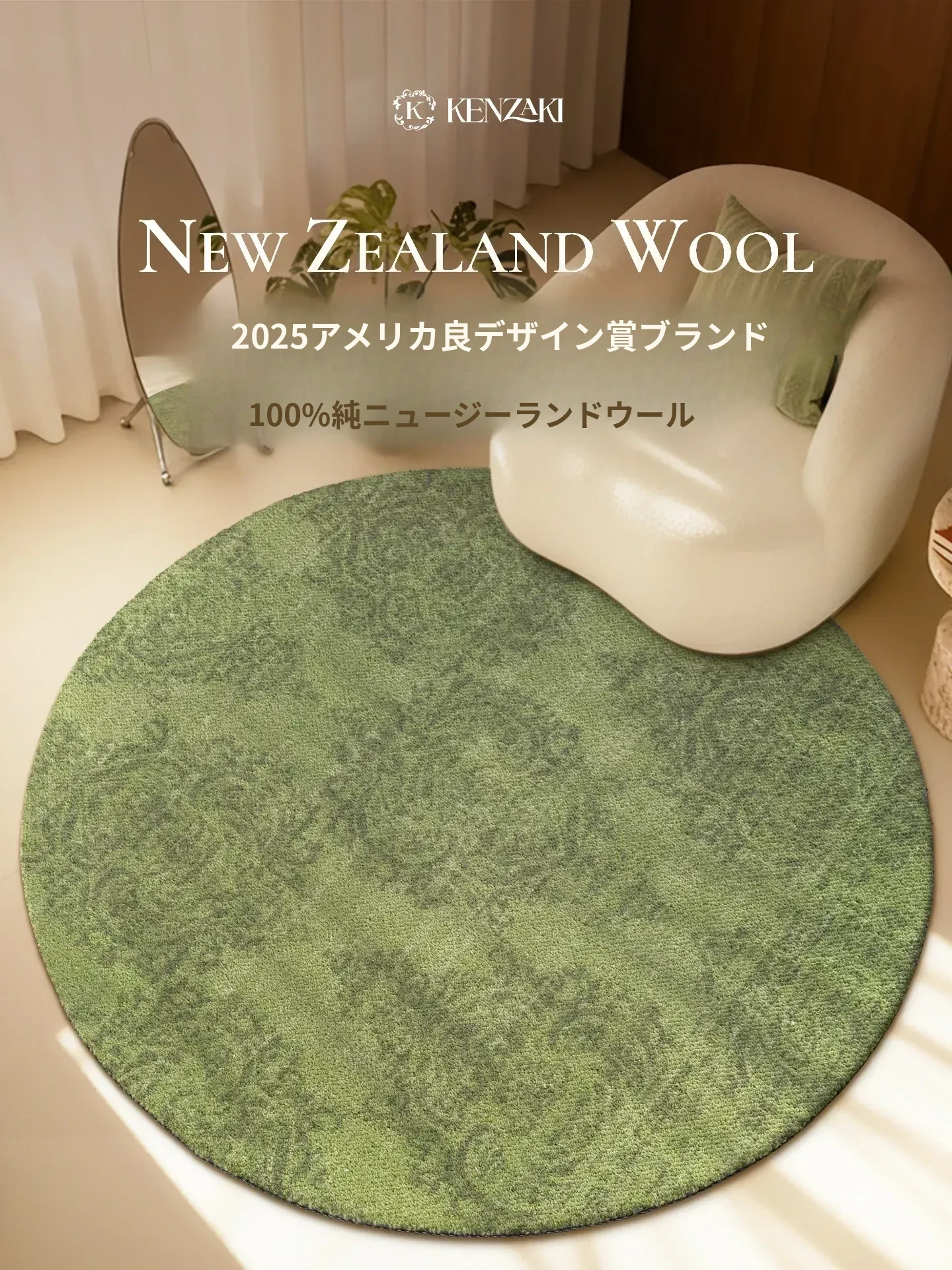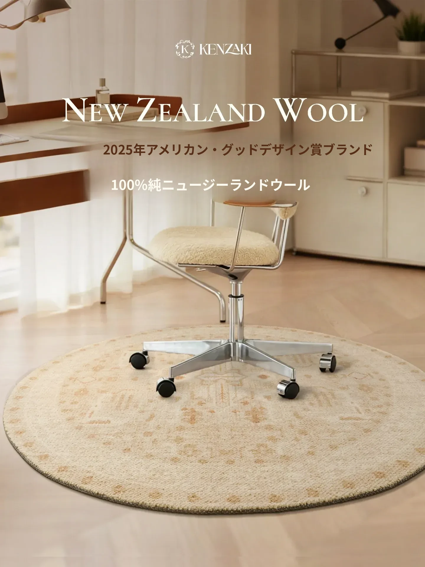 100%ニュージーランド産ウールラグ|ラウンドデザイン|リビングや寝室にぴったりの軽奢スタイル|レトロ&ヴィンテージ感満載の椅子用マット