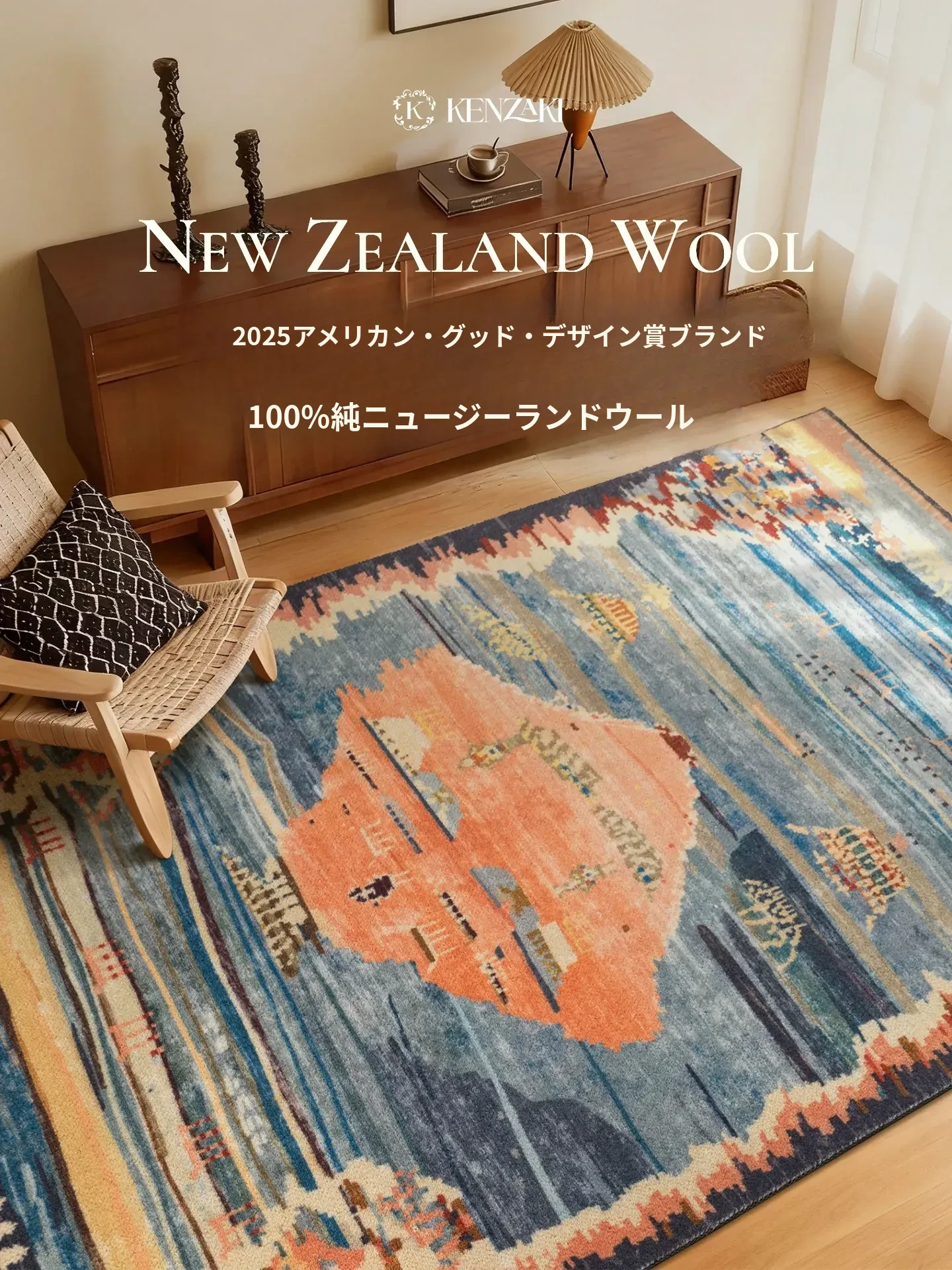 100%ニュージーランド産ウールラグ|エレベーターホール・廊下・玄関マットにも最適!リビングや寝室のベッドサイドにぴったりなラグ|高級感あふれる軽やかなデザインで、上質な空間を演出します。