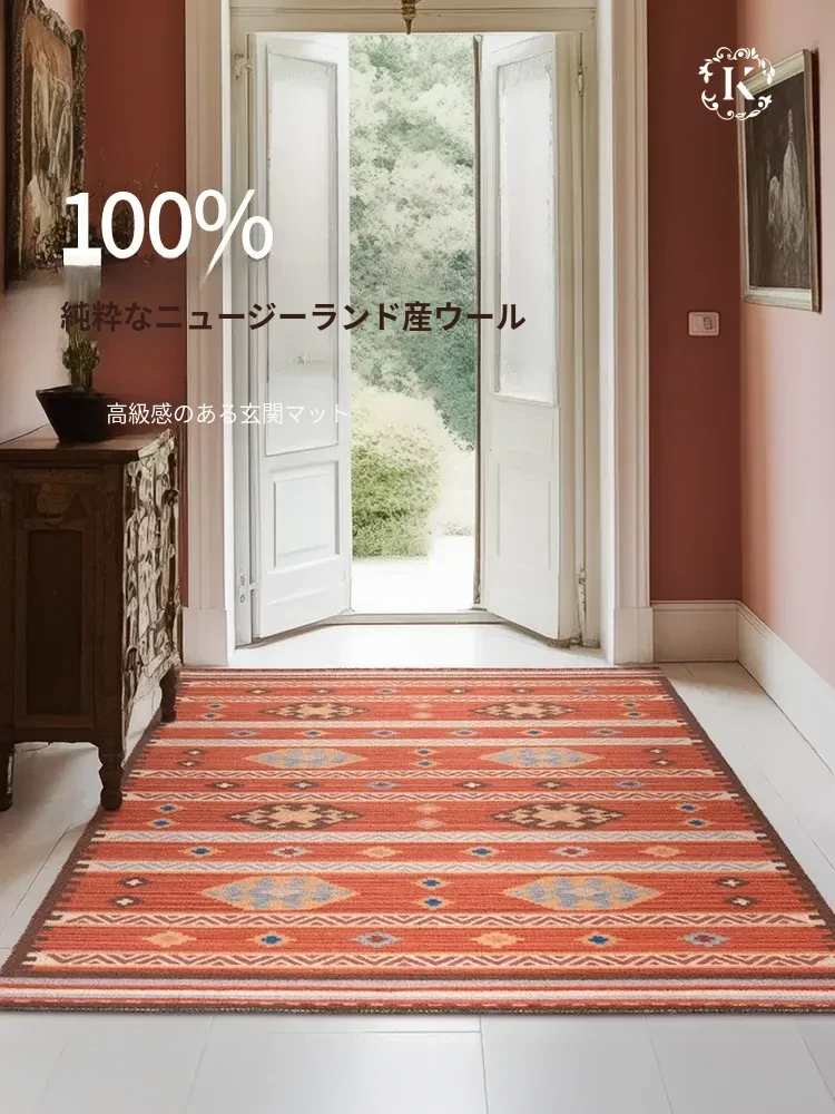 100%ニュージーランド産ウールラグ 高級エントランスマット 軽やかさと洗練を兼ね備えた赤い長方形カーペット おしゃれな廊下や玄関にぴったり!