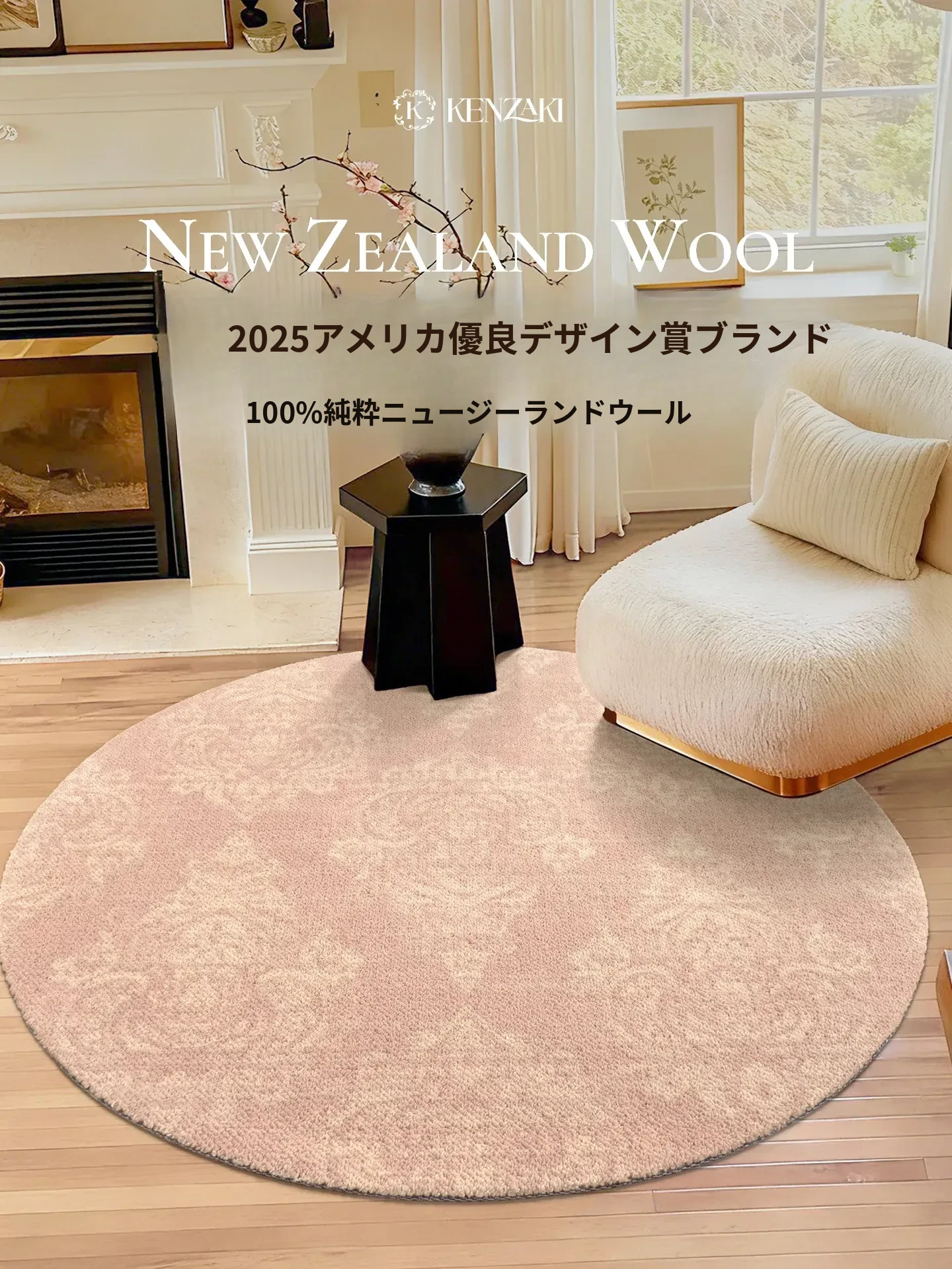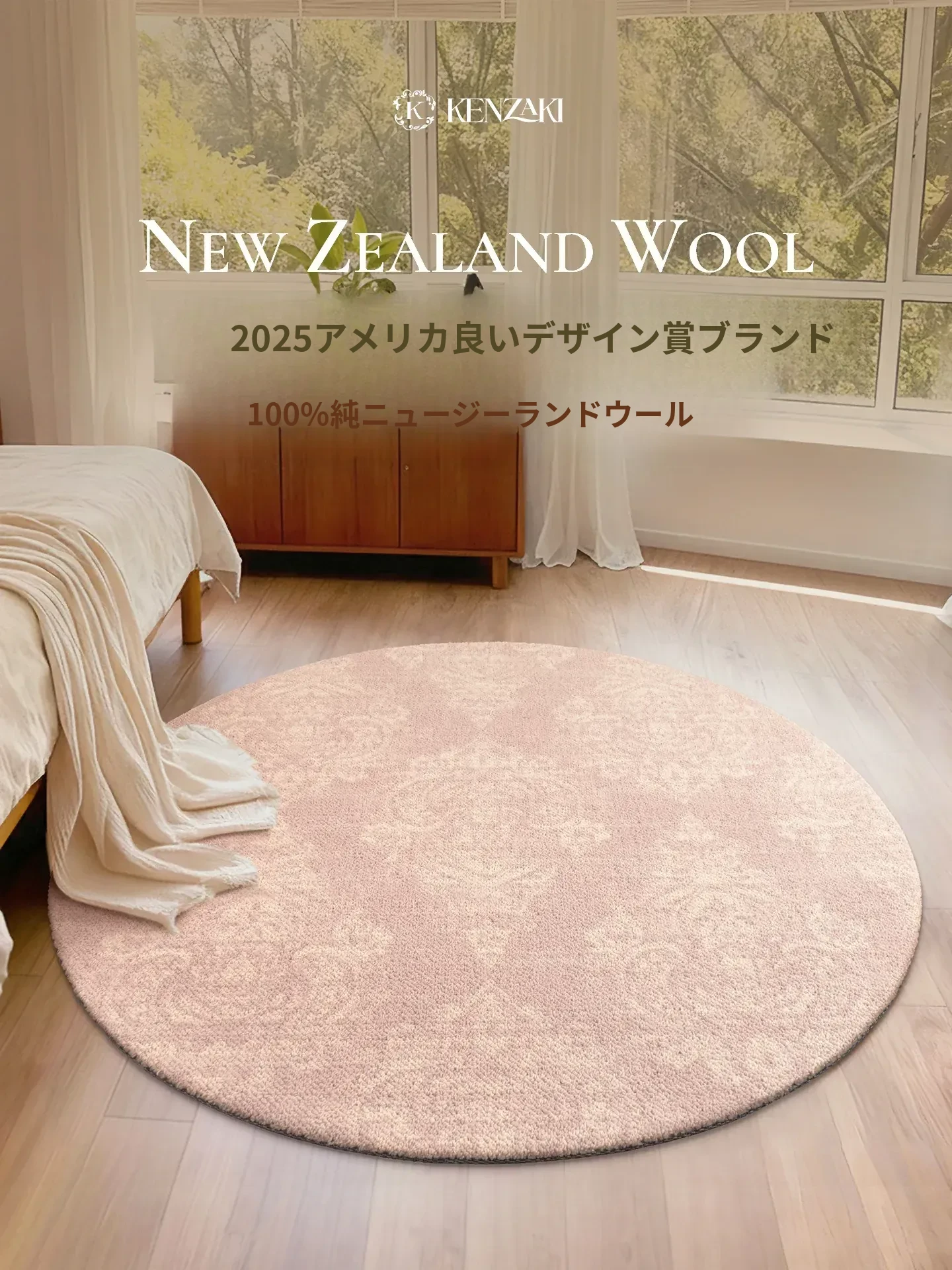 100%ニュージーランドウール使用!ラグジュアリーなピンクのフレンチデザイン、リビングやベッドサイドにぴったり。ヴィンテージ感溢れる新作ラウンドカーペットで、お部屋を華やかに演出します。