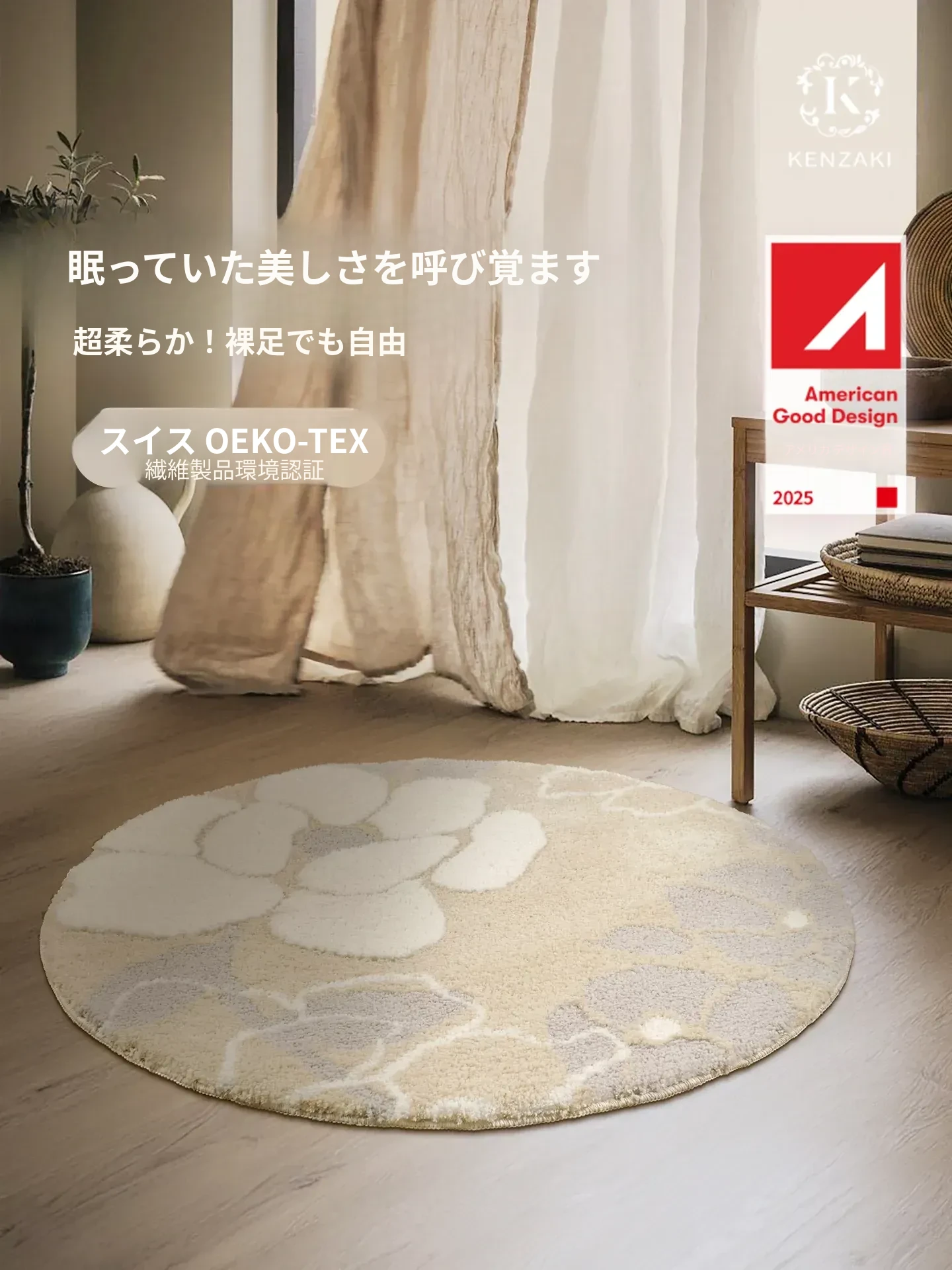 ラウンドカーペット 高級フレンチクリームスタイル リビングルーム用 軽やかなデザイン 女の子の寝室やベッドサイドにぴったり!子供も安心の洗濯機対応で、お手入れ簡単。おしゃれで快適な空間を演出します!