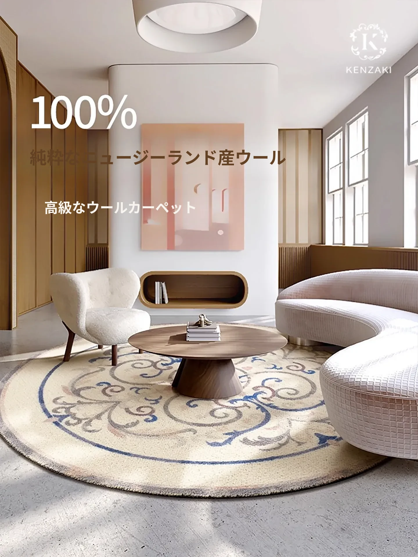 100%ニュージーランドウール製ラグ - リビング・寝室に最適な円形マット、モダン中式&フレンチヴィンテージデザインで、心地よい温もりを提供します。
