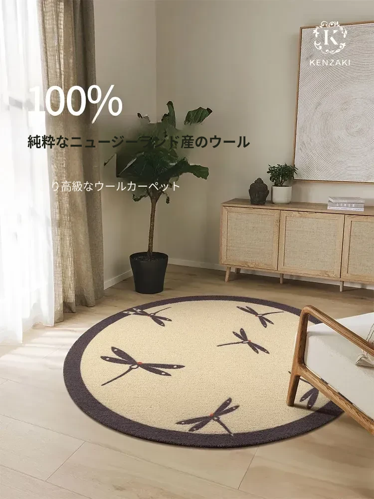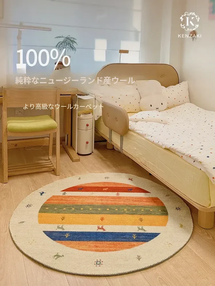 100%ニュージーランド産ウールラグ|おしゃれな丸型デザイン|リビングや女の子の寝室にぴったり|新中式&フレンチビンテージスタイルの魅力|心地よい温もりをあなたのお部屋に!