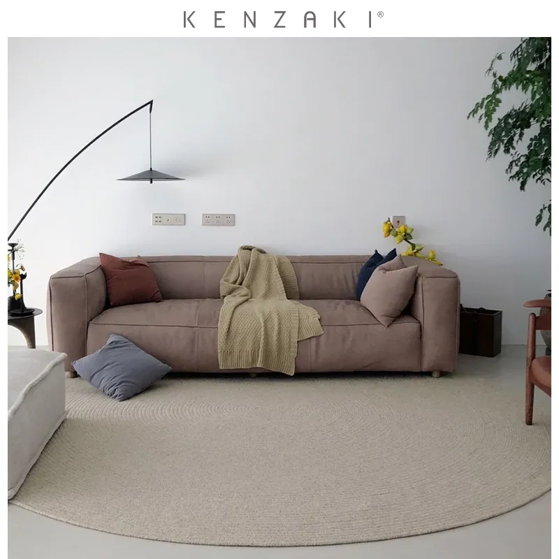 KENZAKI 天然ヤクウールラグ - シンプルなデザインで、リビングや寝室にぴったり!おしゃれな円形ウィーブラグは、ティーテーブルやソファの下に最適で、心地よい触感を提供します。お部屋を暖かく、洗練された雰囲気に演出!