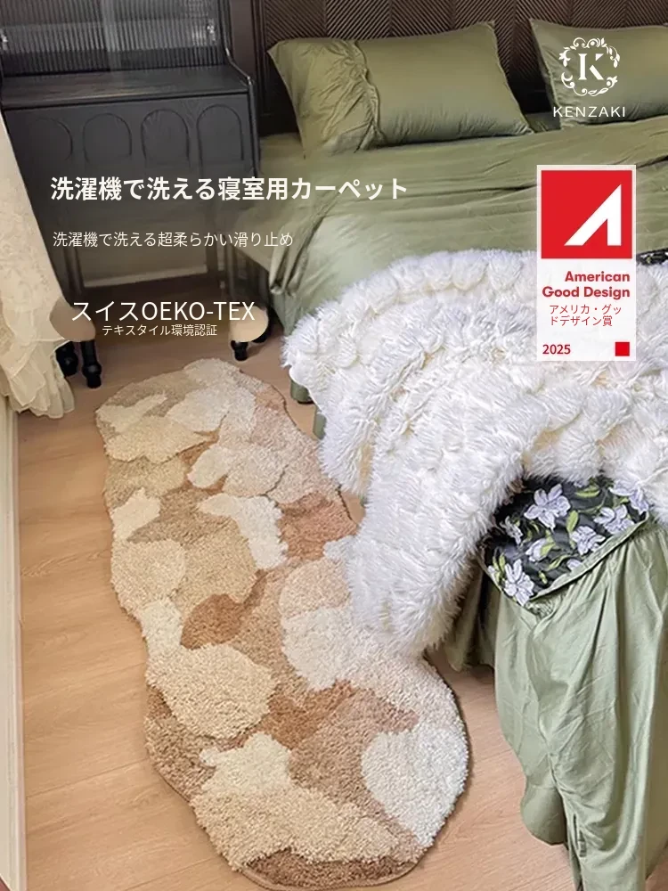 洗える!ふわふわ可愛いベッドサイドカーペット - 子供の読書スペースやベッド前にぴったり!滑り止め&厚手仕様で安心、安全な寝室を実現。