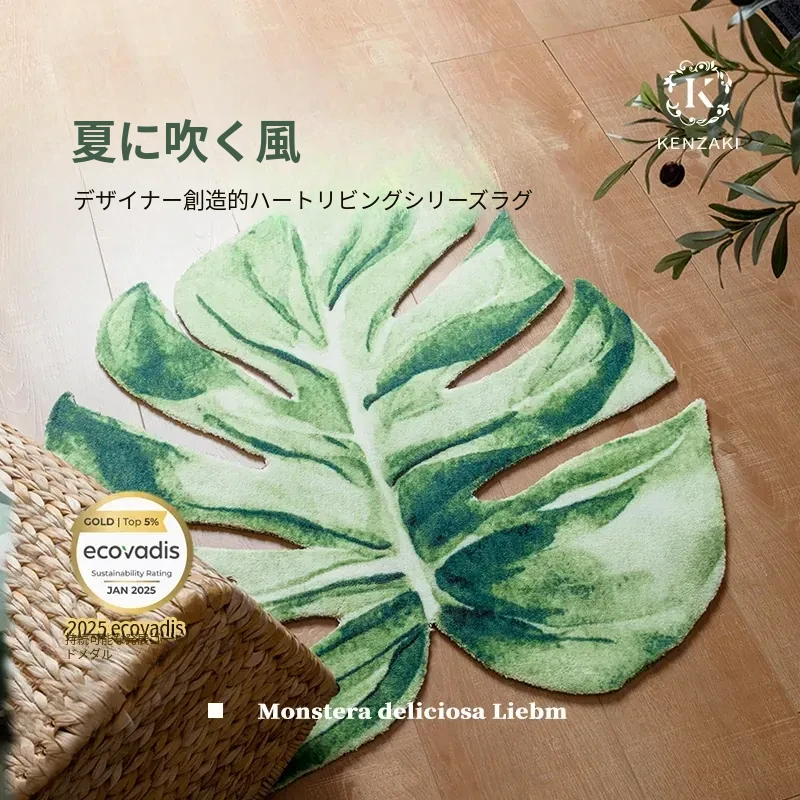 KENZAKI健崎オリジナル グリーン・スネークプラントデザインの衣類収納・バルコニー・寝室・コーヒーテーブル・リビング用ユニークな形のラグカーペットで、心地よい緑の空間を演出!