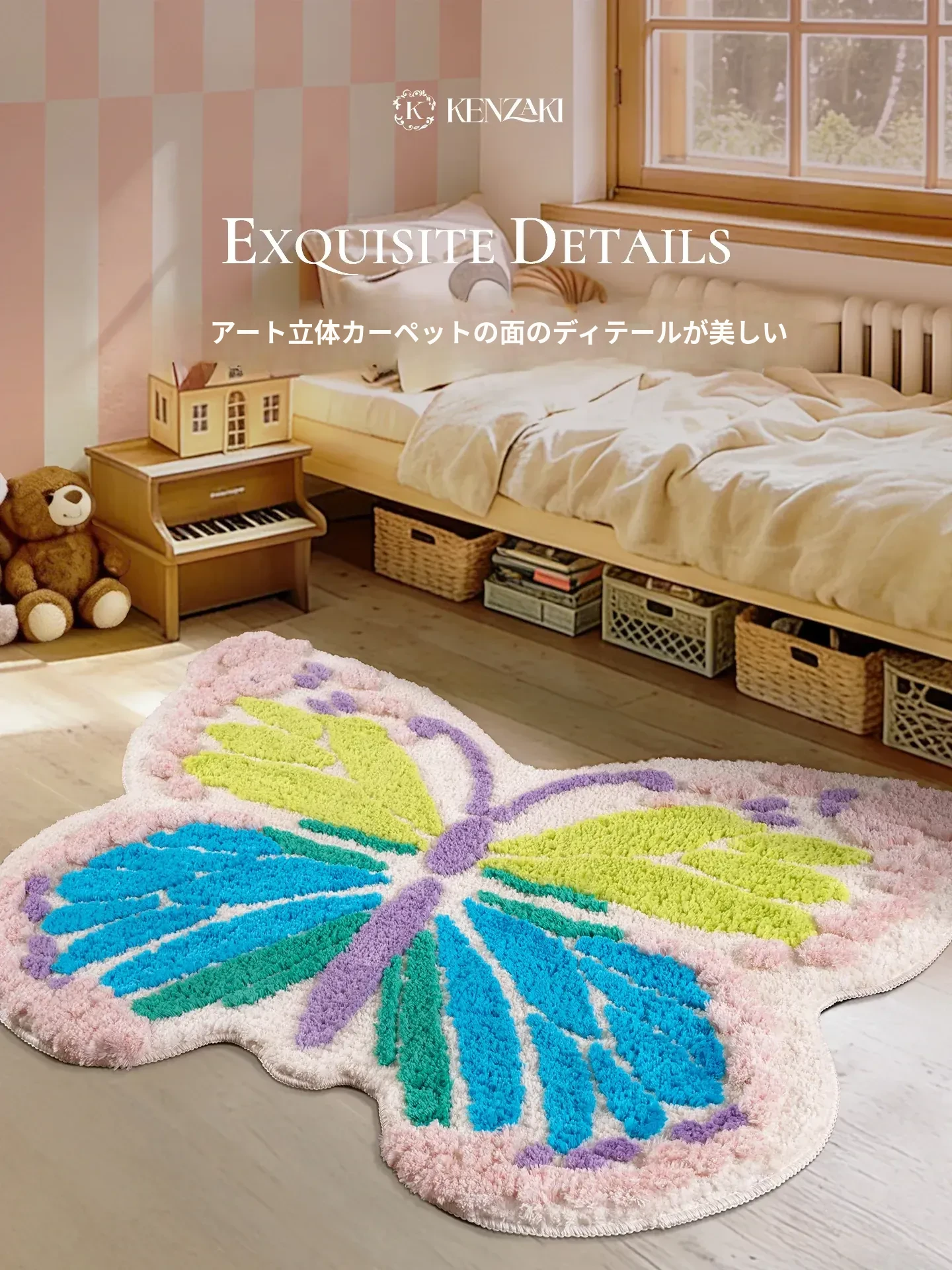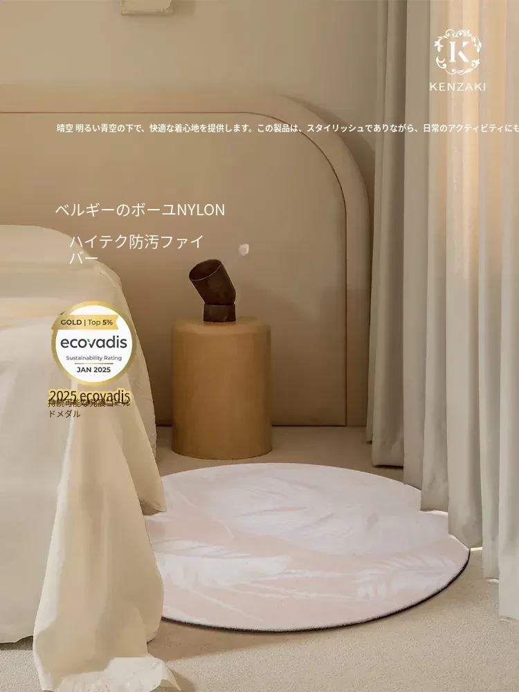 KENZAKI健崎 2025年新作!可愛らしい女の子のためのラグ、リビングやベッドサイドにぴったりな軽やかで高級感あふれる丸型カーペット。お部屋をもっと素敵に彩るアイテムです!