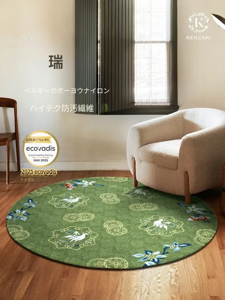 ラウンドカーペット|リビングにぴったりのラグ|高級感あふれる新中式&フレンチヴィンテージデザイン|グリーンでおしゃれなベッドサイドマット|子供の椅子用クッションにも最適!