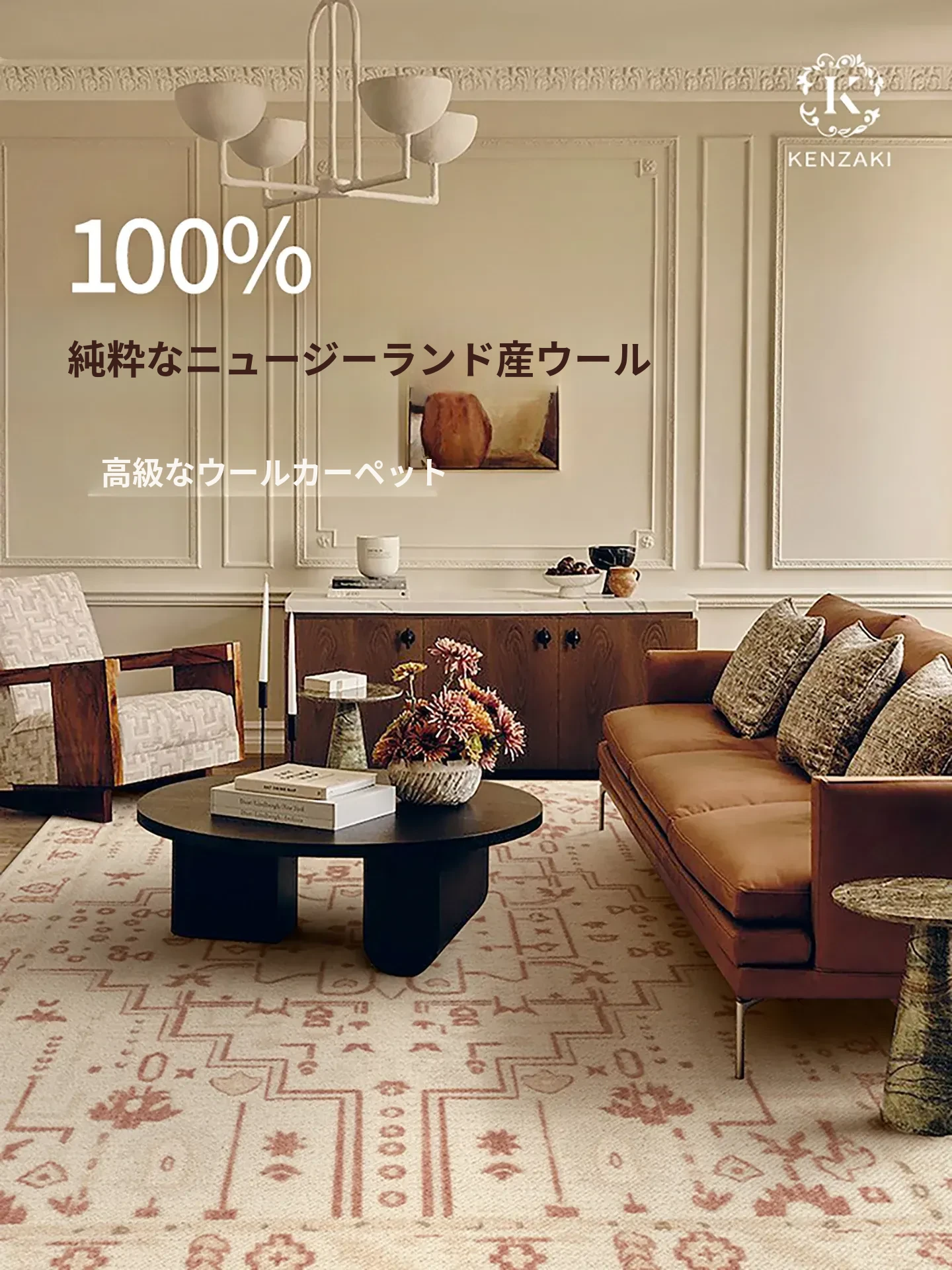 100%ニュージーランドウール使用!ラグジュアリーなフレンチヴィンテージスタイルの高級カーペット。リビングやベッドサイドにぴったりのモダンで洗練されたデザイン。心地よい肌触りと温もりをお届けします。