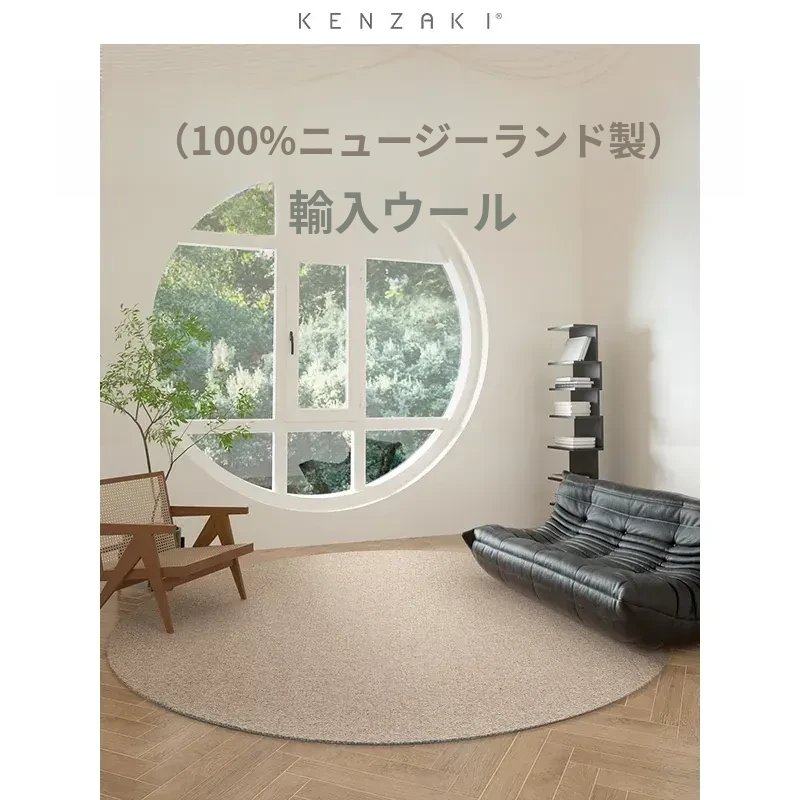 100%ニュージーランドウール使用!ラグジュアリーな無地デザインの円形ラグ、リビングやベッドサイドに最適。心地よい肌触りで、あなたの空間を優雅に彩ります。
