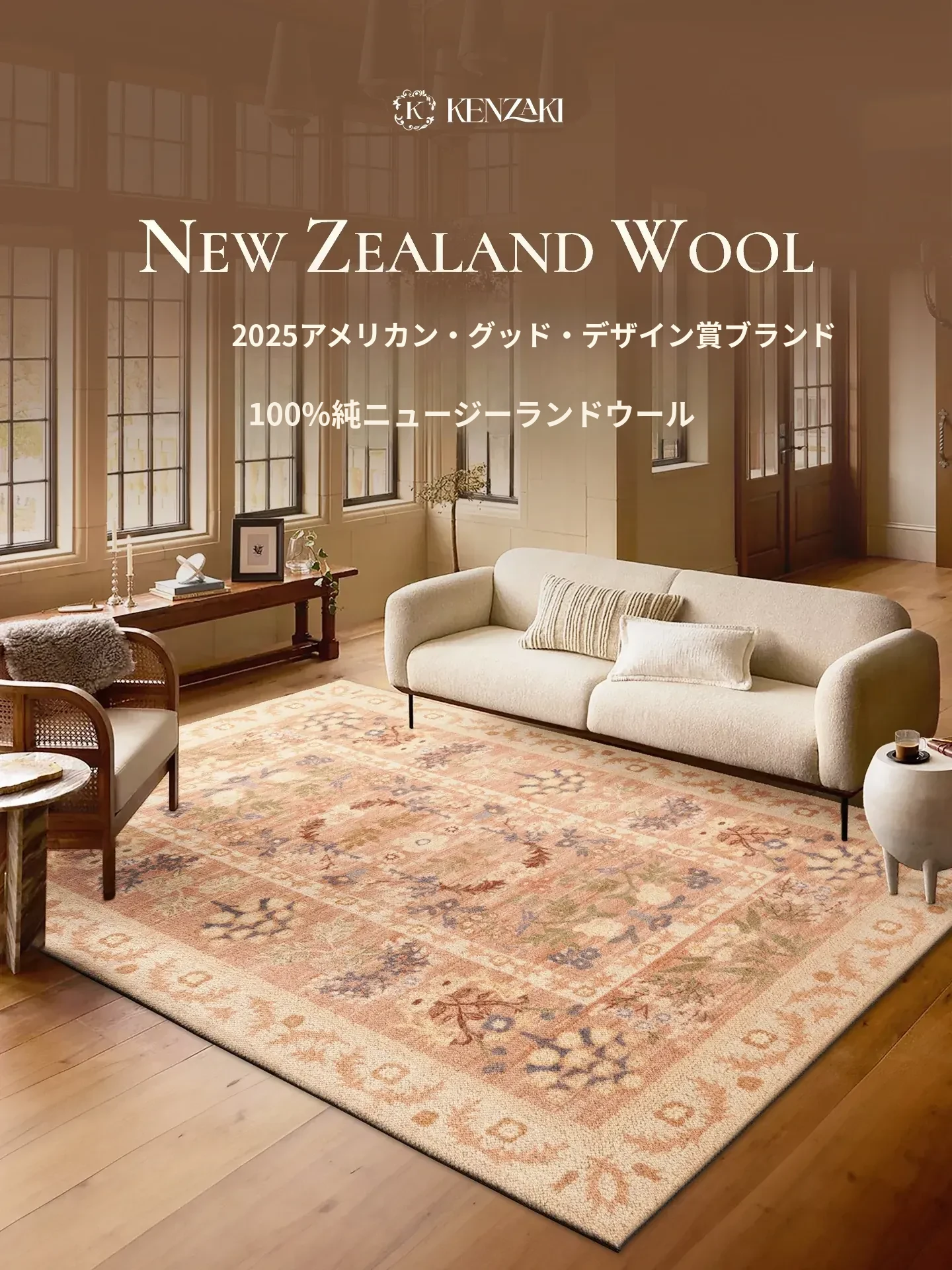 100%ニュージーランド産ウールラグ|リビング・ベッドルーム・ソファ横に最適|ヴィンテージ風の軽やかなフレンチラグ|上質な触り心地で空間を優雅に演出!
