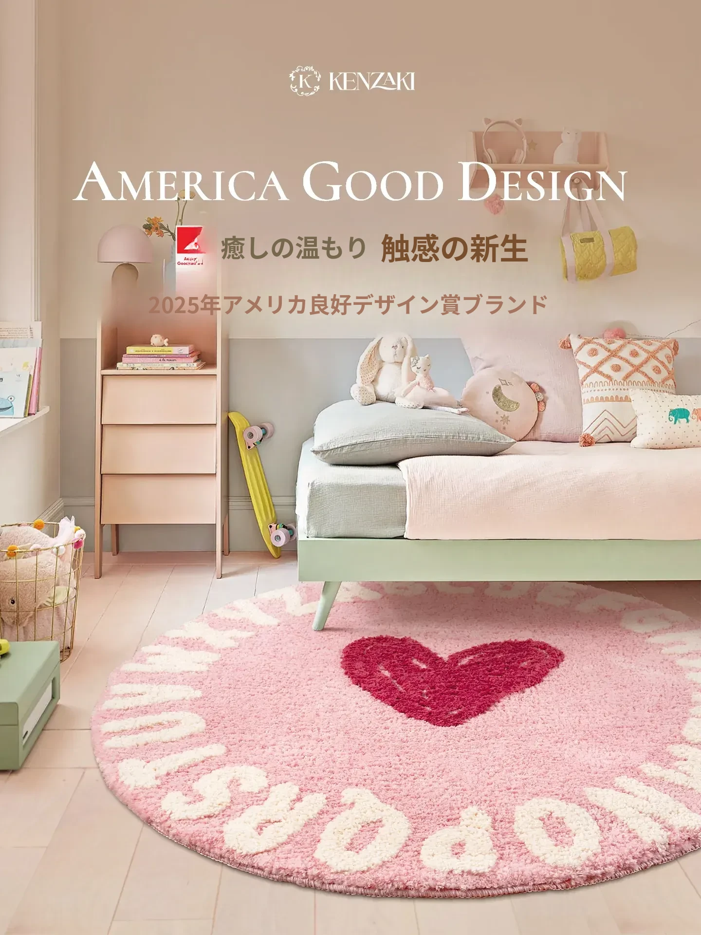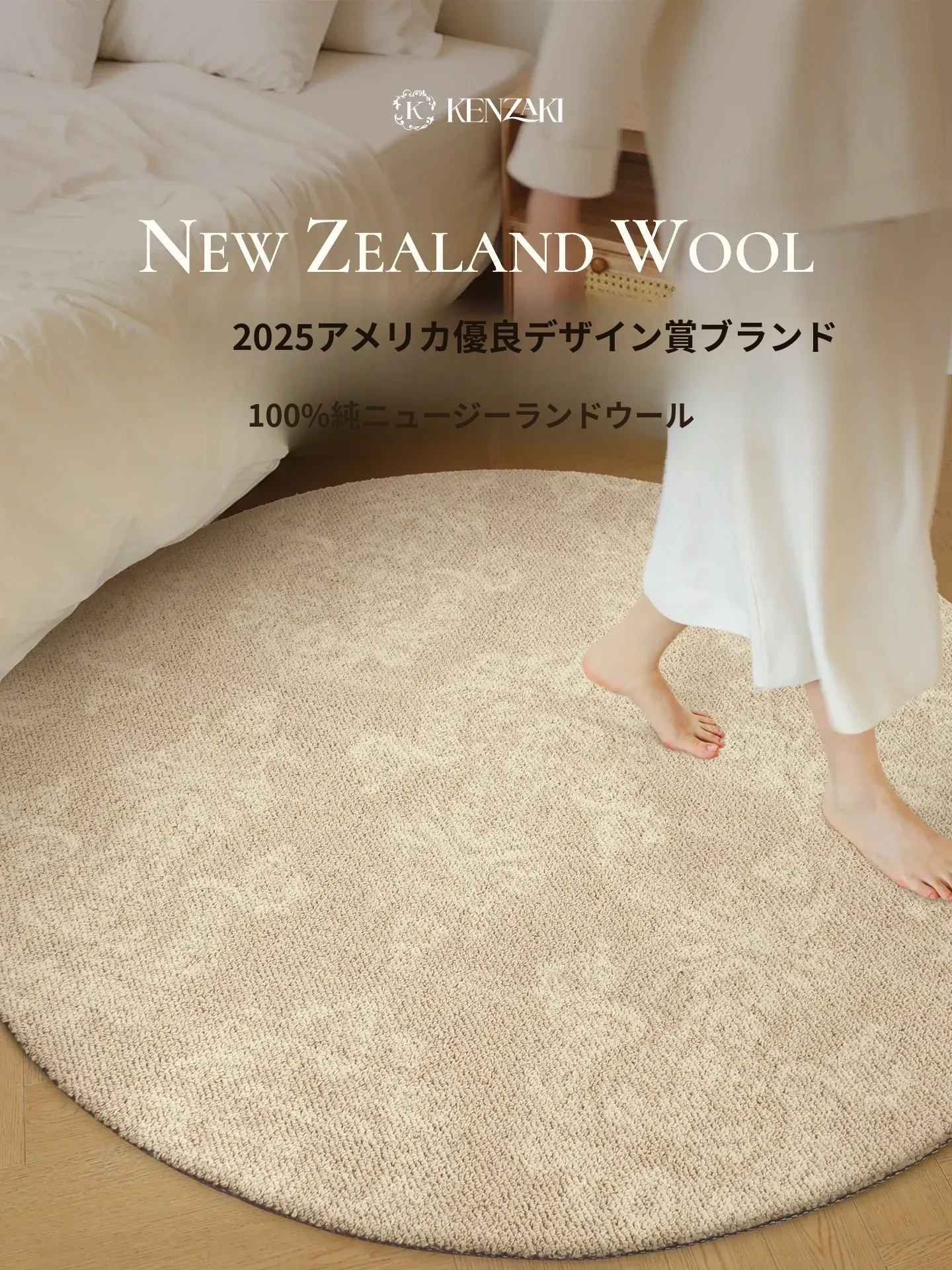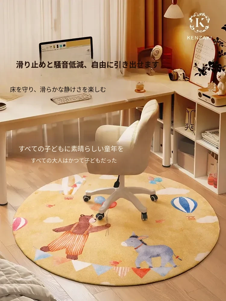 KENZAKI健崎 2025年新作!可愛らしい女の子のためのラグ、リビングやベッドサイドにぴったりな軽やかで高級感あふれる丸型カーペット。お部屋をもっと素敵に彩るアイテムです!