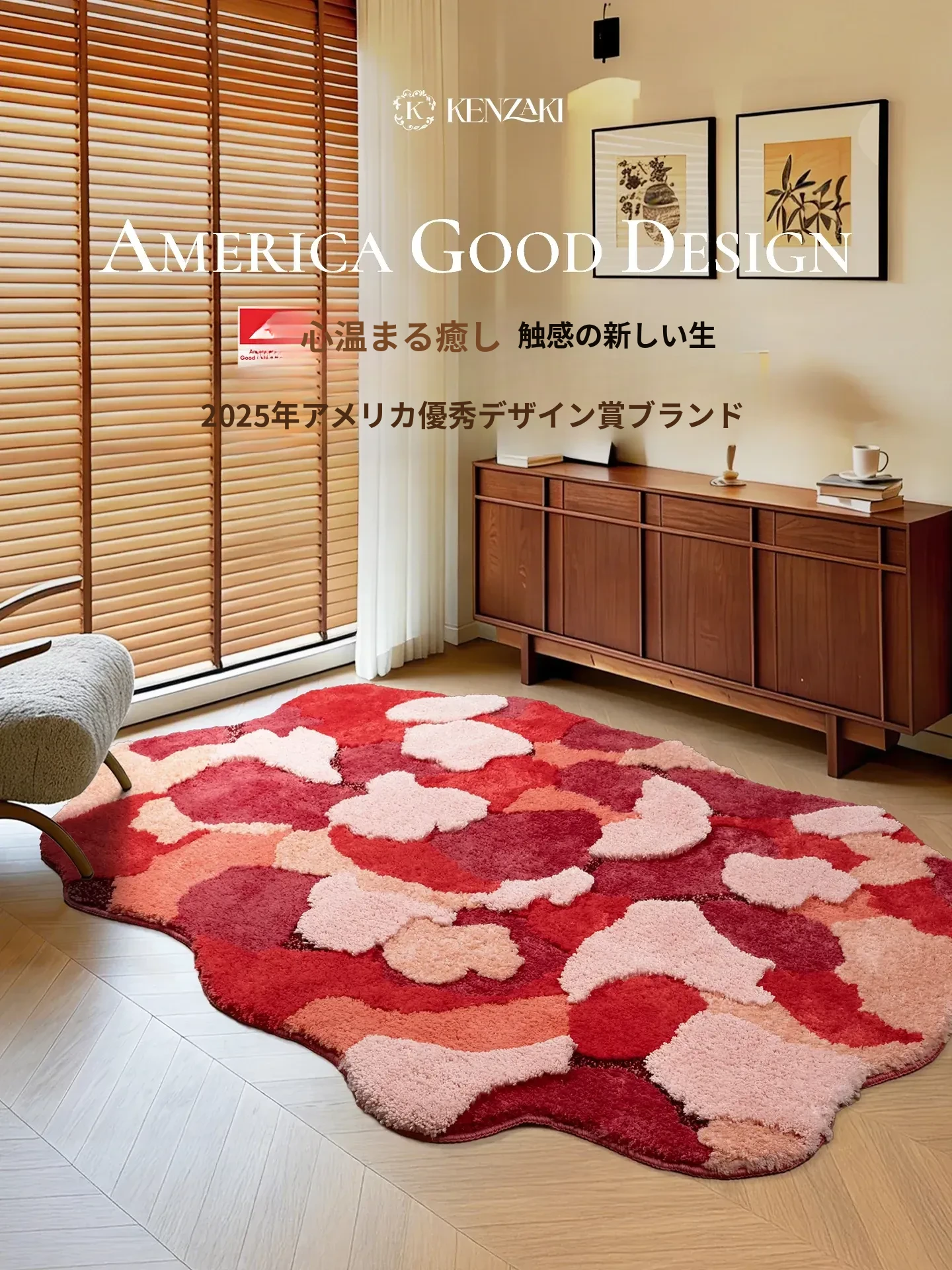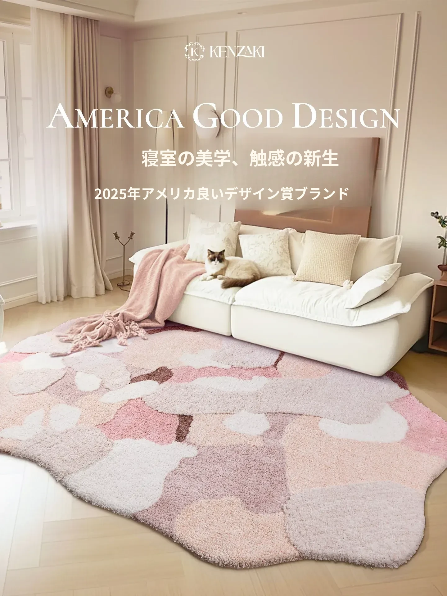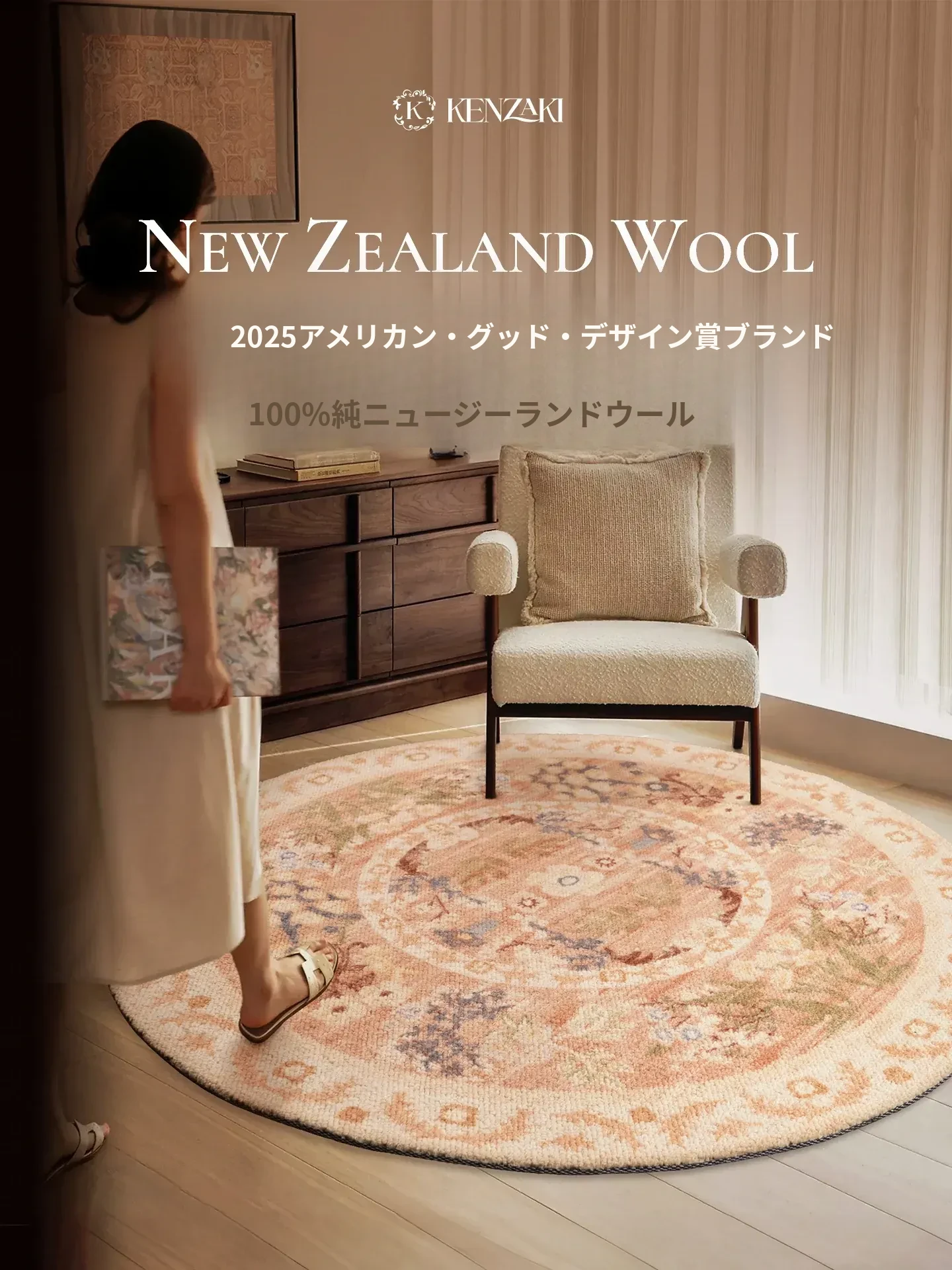 KENZAKI健崎 2025年新作!可愛らしい女の子のためのラグ、リビングやベッドサイドにぴったりな軽やかで高級感あふれる丸型カーペット。お部屋をもっと素敵に彩るアイテムです!