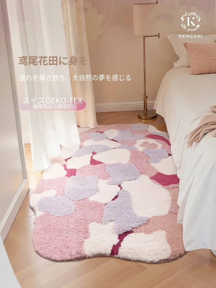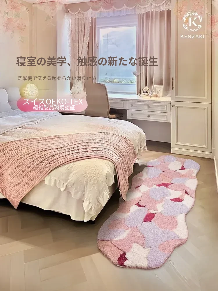 リビングルーム用カーペット 女の子の寝室にぴったりなベッドサイドマット 子供用フロアマット ピンクの苔クリーム風デザイン 心を癒すドーパミンカラー 洗濯機で洗える便利さも魅力!