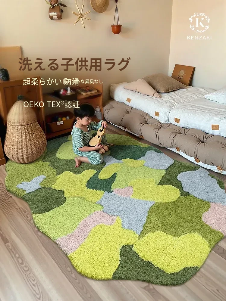 子供用カーペット ベッドサイドマット INS風 おしゃれな読書エリアマット グリーンモス 防滑・防音・厚手・洗濯機対応 夢のような空間を演出!
