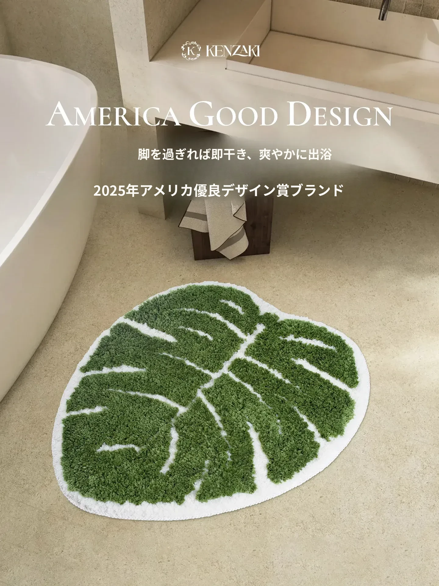 洗面所用のふかふか吸水マット|かわいいインスタ風デザイン|滑り止め付きで安心|洗濯機で簡単お手入れ|バスルームやトイレの入り口に最適!