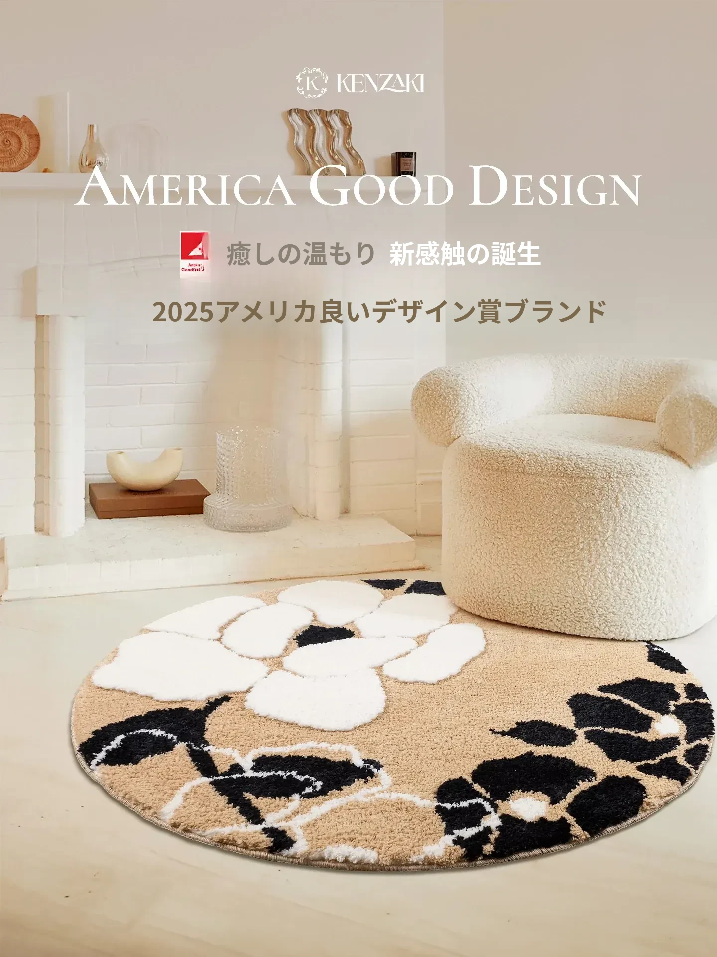 2025年新作!リビングにぴったりのラグ、ベッドサイドマット、女の子のための可愛いデザイン。子供部屋やデスクチェアにも最適なラウンド形状で、軽やかさと上質感を演出します。