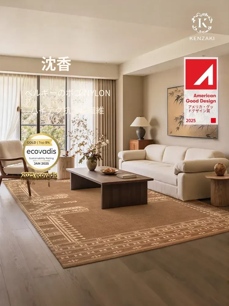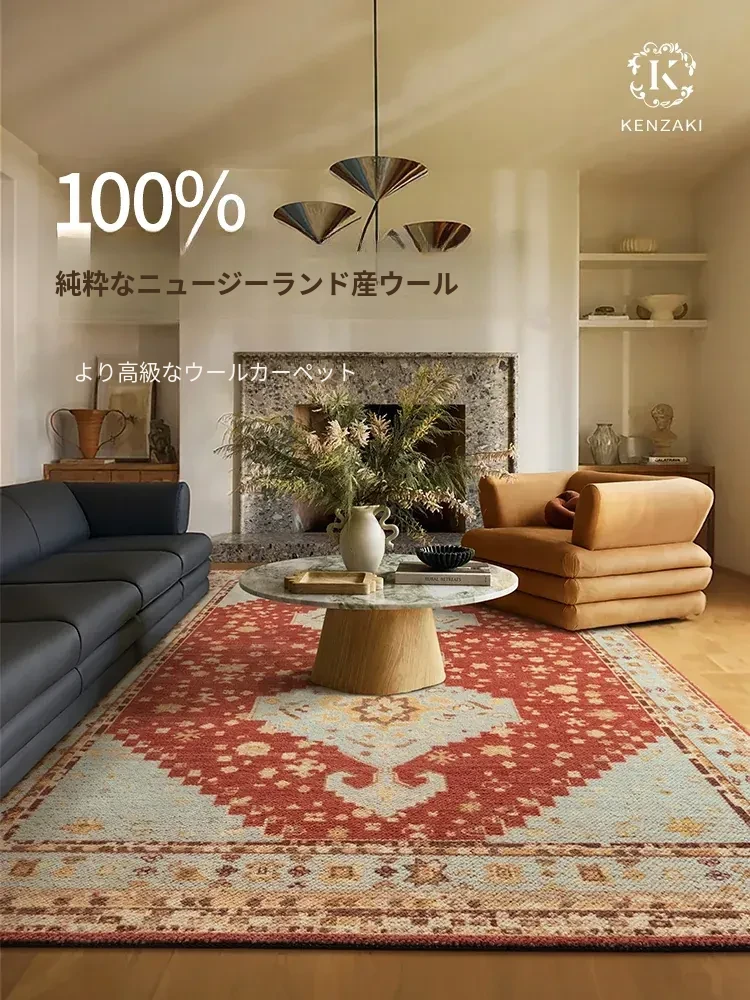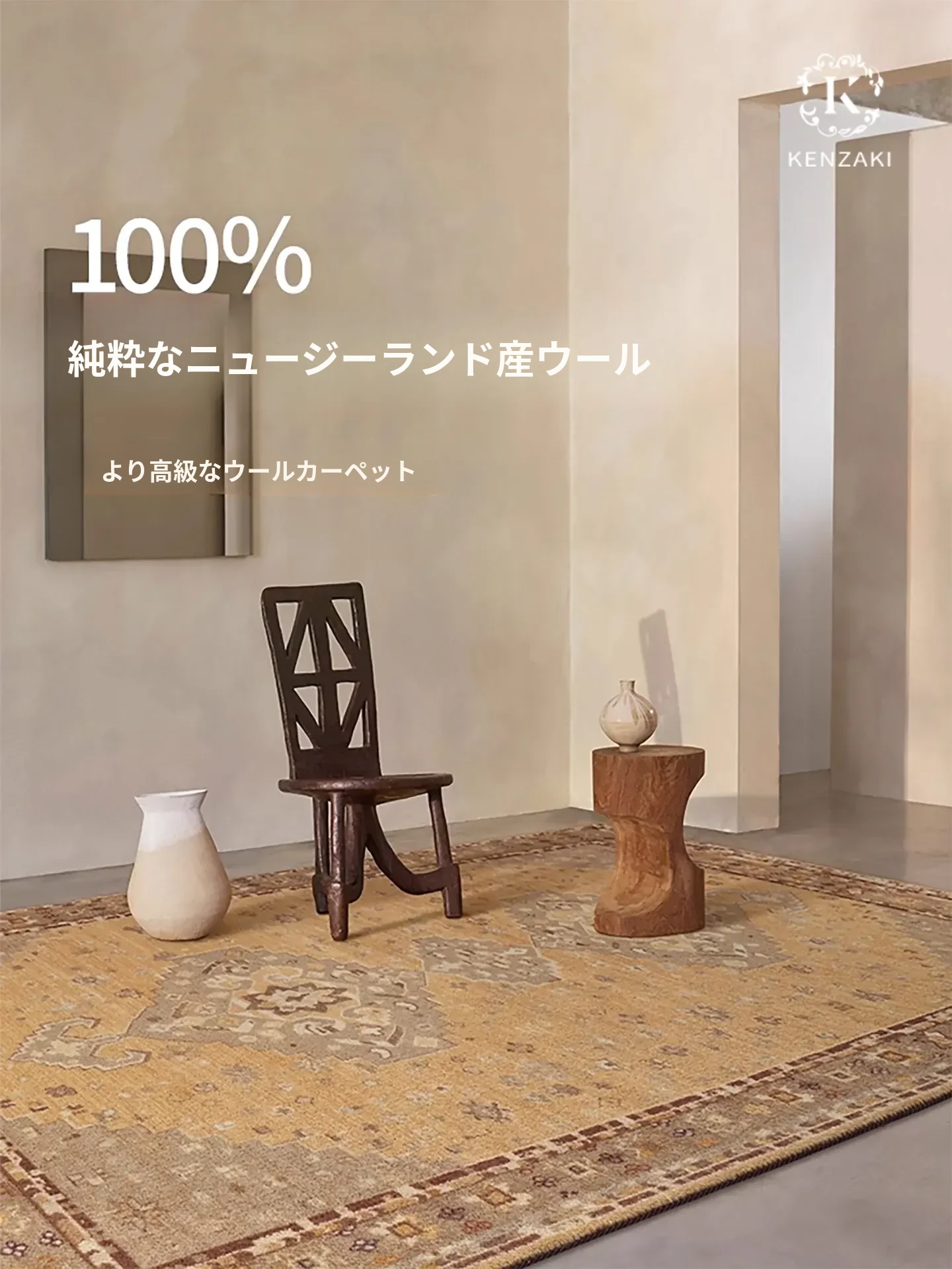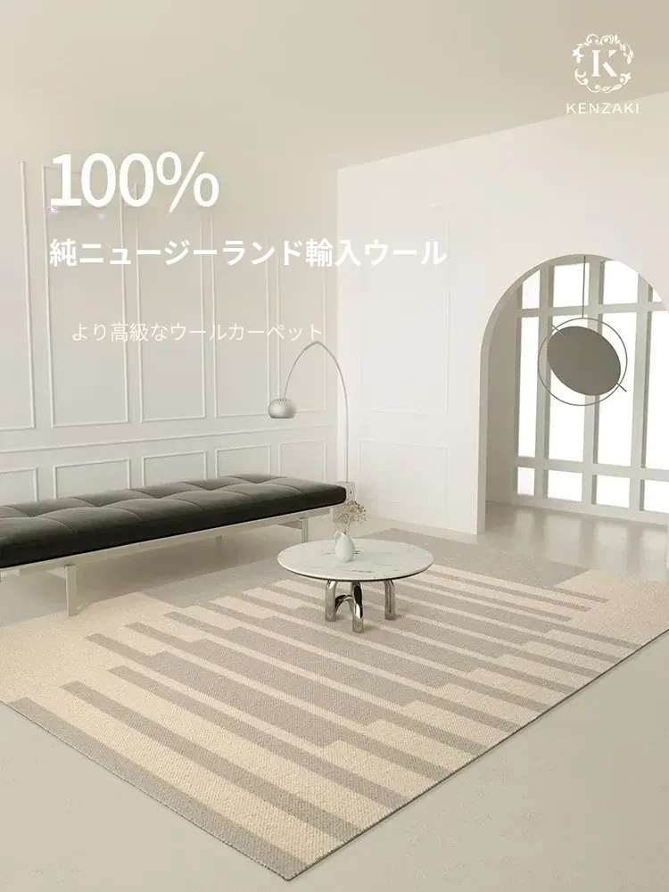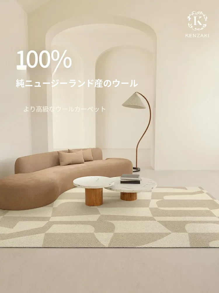 KENZAKI健崎 100%ニュージーランドウールラグ|リビング・寝室に最適!高級感溢れるソファサイドマットで、贅沢なひとときを演出。
