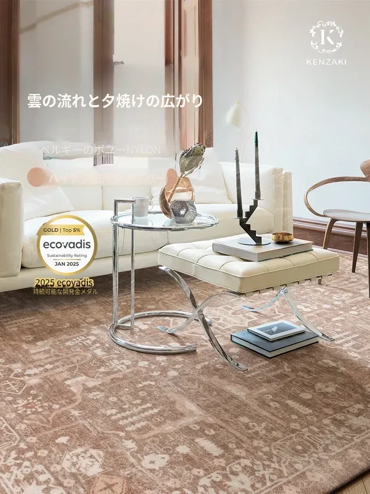 新中式デザインのラグ - 高級感あふれるリビング用ソファとコーヒーテーブルにぴったり!レトロブラウンのフレンチスタイル、ベッドサイドにも最適なヴィンテージ風マット。あなたの空間を一層魅力的に演出します!