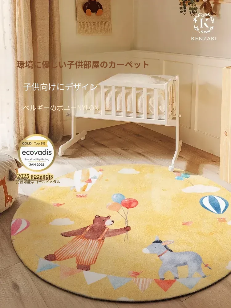 子供用カーペット ベッドサイドマット 学習デスク用ラウンドマット 防音&可愛いデザイン 高級感溢れるイエロー色でお部屋を華やかに彩ります!