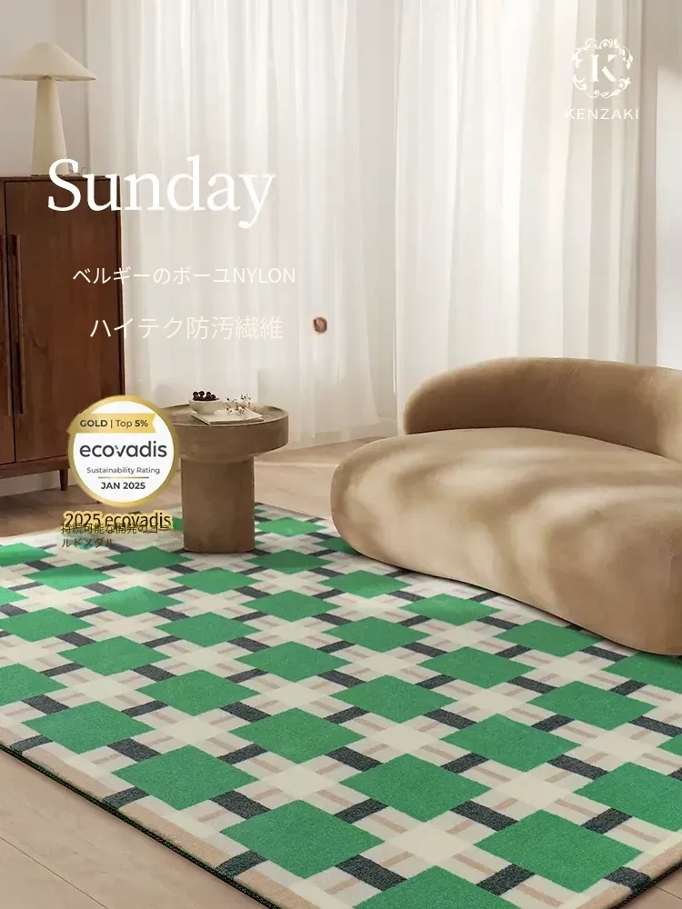 リビングルームにぴったりのラグ|高級感あふれるフレンチスタイルのグリーンインス風|厚手で防音効果抜群|ベッドサイドやソファ、テーブルの下に最適なマット