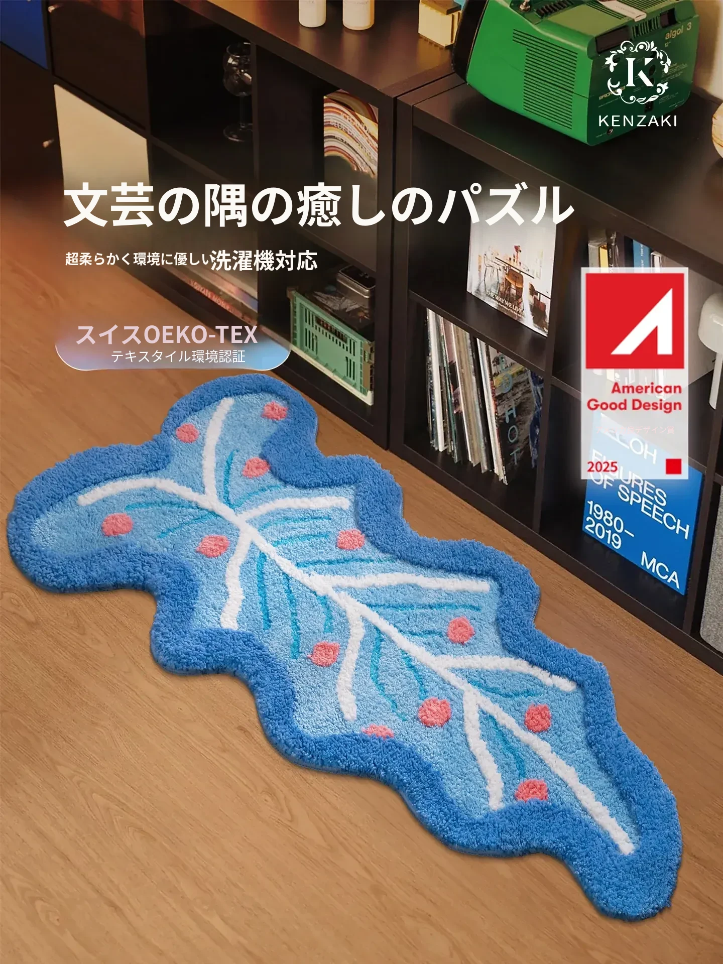 子供用カーペット おしゃれな寝室用インテリア 青い葉柄のユニークな長方形マット 男の子・女の子のお部屋にぴったり 洗濯機で洗えるのでいつでも清潔!