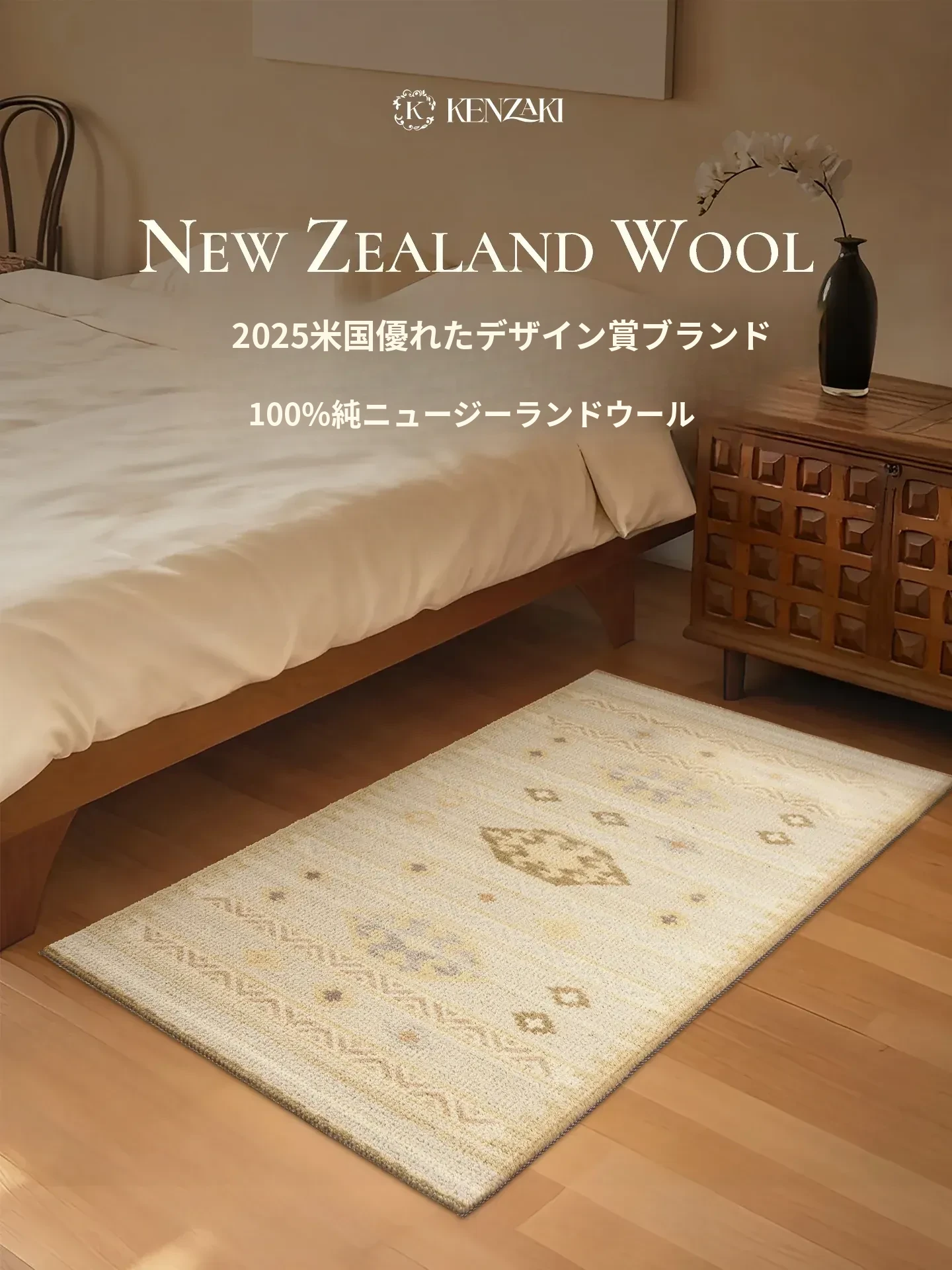 100%純正ニュージーランドウールのカーペット - 寝室にぴったりなインスタ風ベッドサイドマット!新作フレンチレトロデザインで、リビングに軽やかなラグジュアリー感をプラス。高級感溢れる上質な一品をお楽しみください!