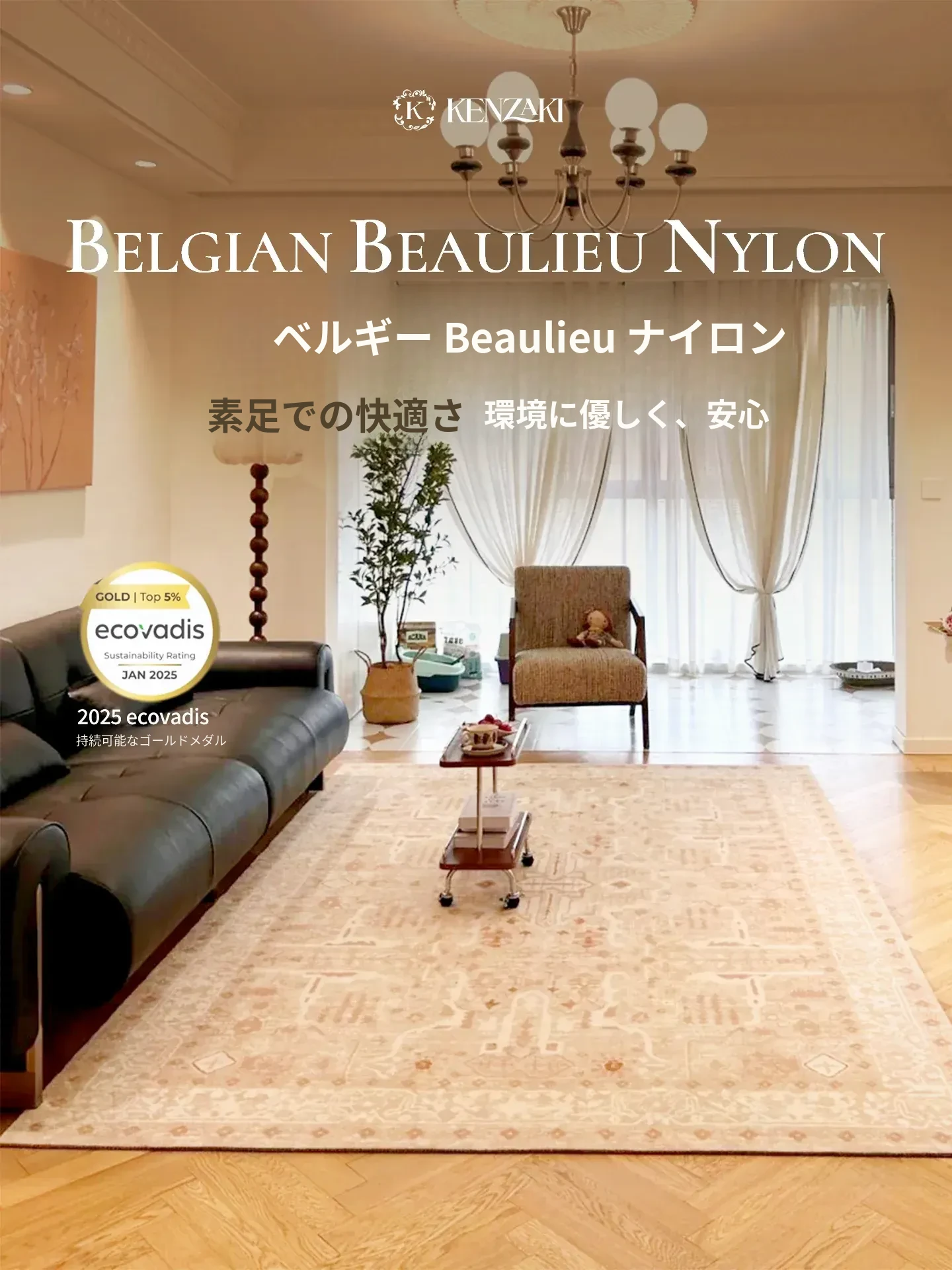 100%ニュージーランドウール使用!リビングや寝室に最適なフレンチラグ。軽やかなラグジュアリー感とヴィンテージデザインで、ソファ周りをおしゃれに演出します。