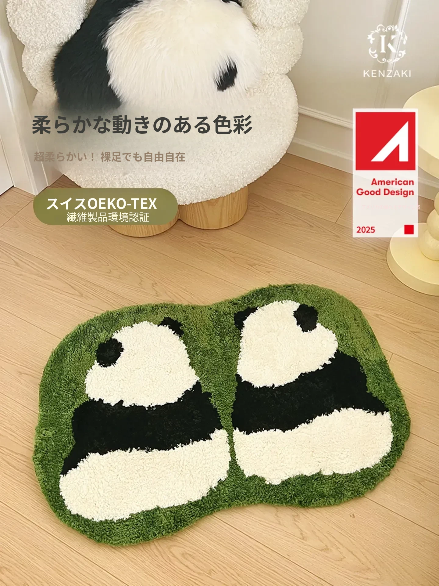 KENZAKI 洗える超柔らかベッドサイドマット - インスタ風デザインのオリジナルパンダ!滑り止め付きで子供部屋にもぴったり。快適な寝室を演出し、可愛いアイテムでお部屋を彩ります!
