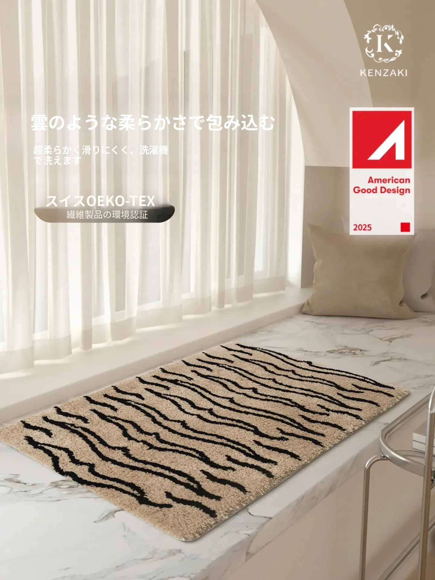 KENZAKI 洗濯可能な超柔らかいトラ模様のラグ - 寝室、クローゼット、ドレッシングミラー、窓辺、滑り止めベッドサイドラグに最適!心地よい触感で毎日のリラックスタイムを演出します。