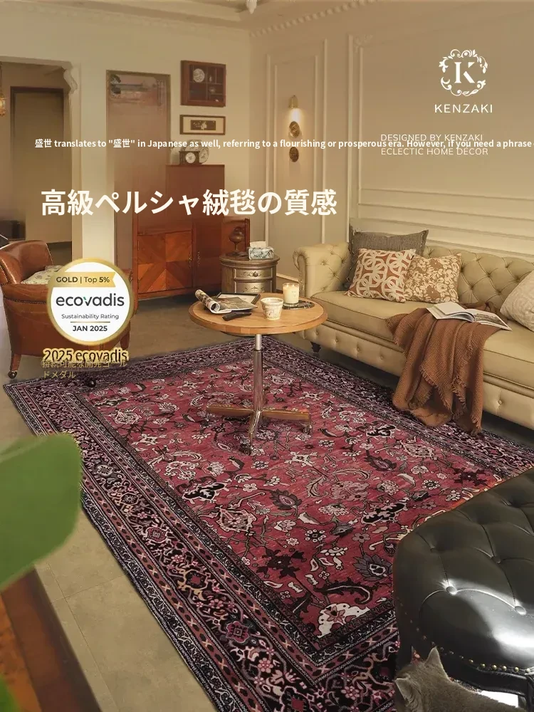 2025年新作!軽やかで高級感あふれるフレンチ&アメリカンスタイルのレトロな赤いペルシャ風カーペット。リビングやベッドサイドにぴったりの上品なデザインで、あなたの空間を華やかに彩ります。