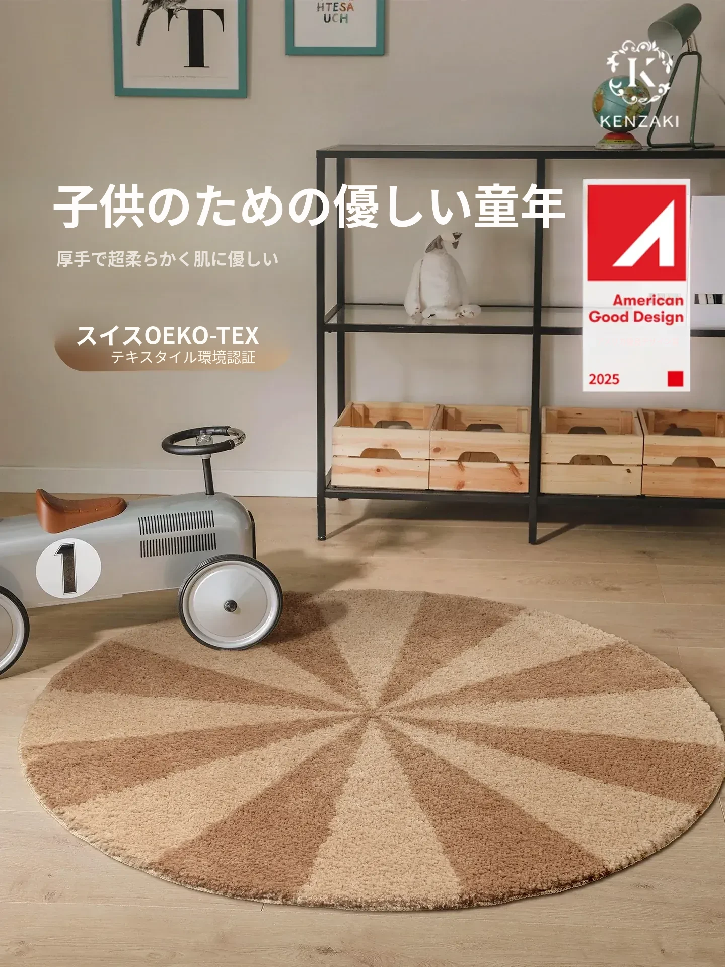 丸型カーペット 女の子の寝室にぴったり!ベッドサイドマット インスタスタイルのブラウン 男の子用 子供の成長を祝うマット リビングにも最適 滑り止め付きで安全!洗濯機で洗えるからお手入れ簡単!