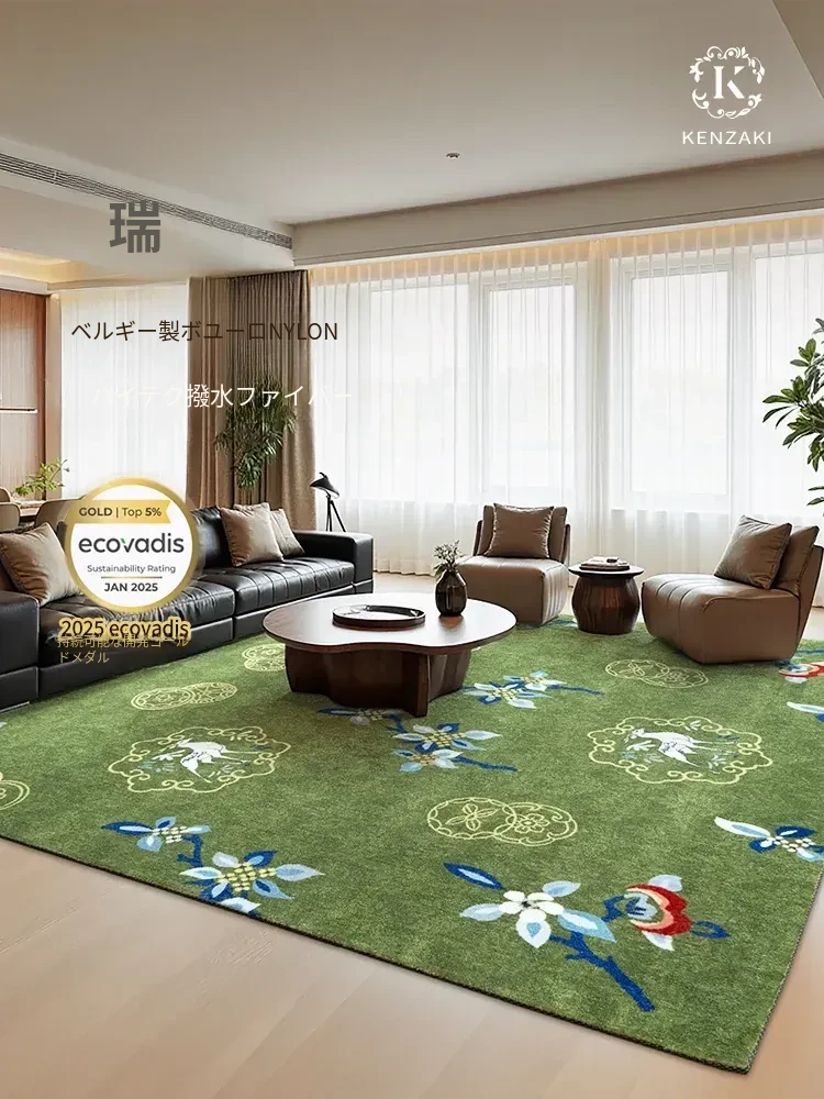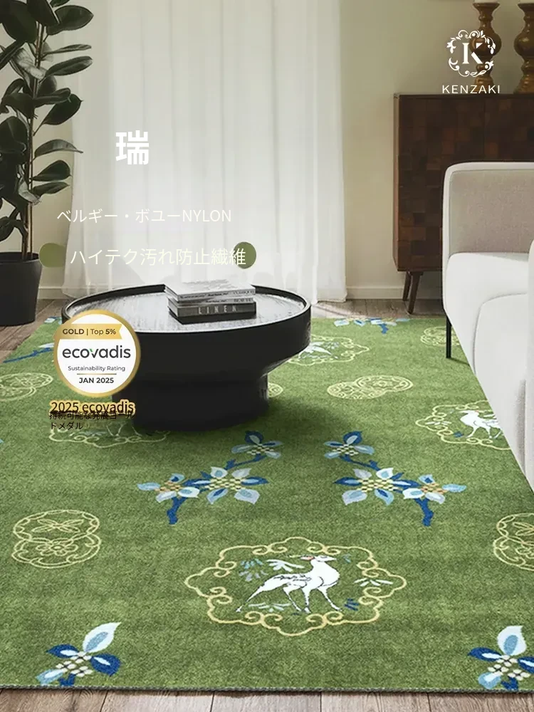 高級感あふれるフレンチヴィンテージスタイルのラグ - リビングにもぴったり!音を吸収する機能性と、子供部屋やベッドサイドに最適なデザイン。新中式のグリーンカラーで、あなたの空間をおしゃれに彩ります。