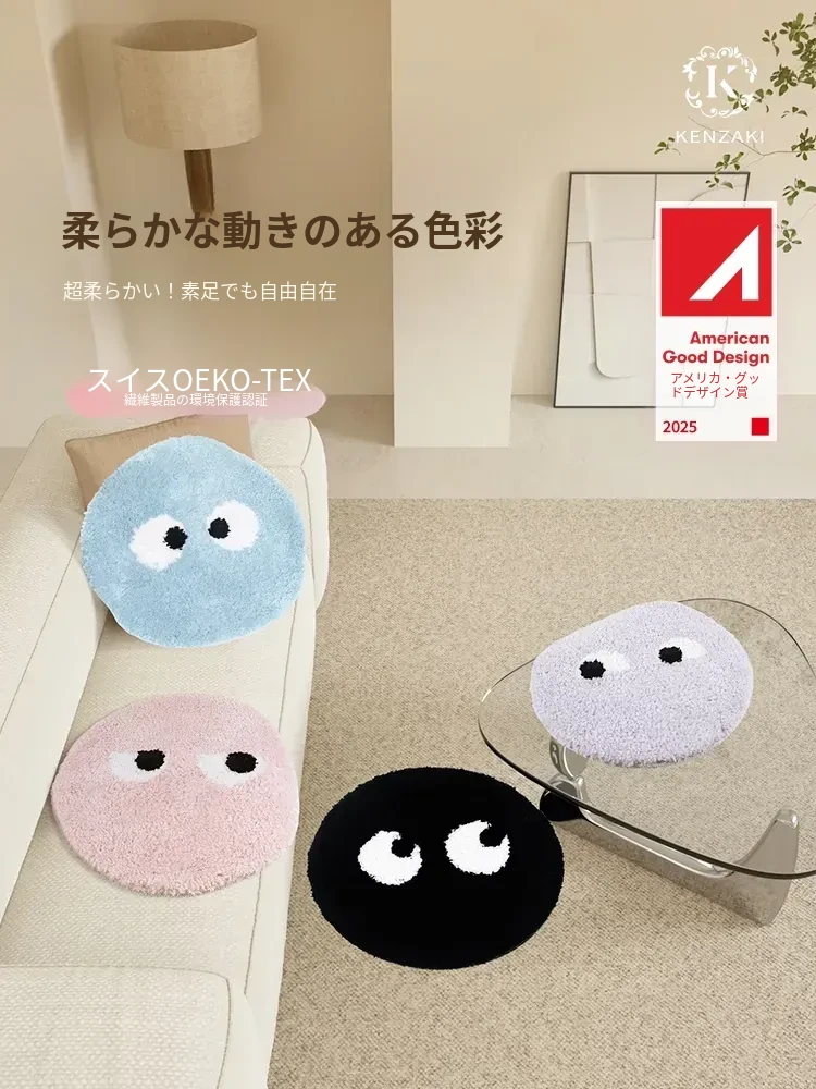かわいいラウンドカーペット 子供用学習チェアマット 窓辺マット 寝室ベッドサイドマット 滑り止め加工のふわふわクッション 洗濯機で洗えるからいつでも清潔!